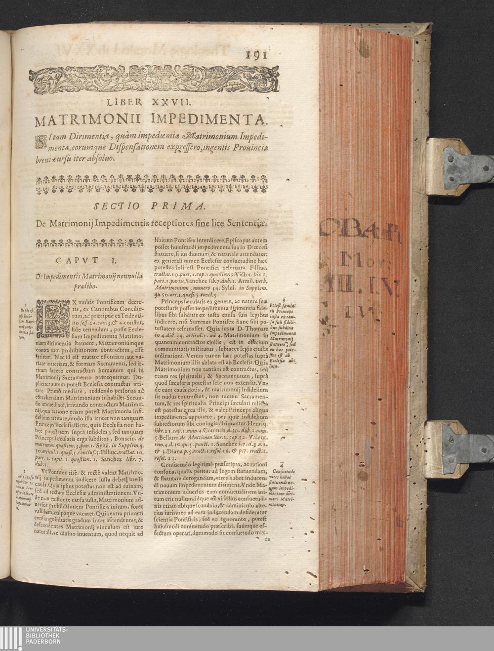 3,2: R. P. Antonii De Escobar Et Mendoza, Vallisoletani, Societatis Iesv Theologi, Vniversæ Theologiæ Moralis, Receptiores Absqve Lite Sententiæ nec-non Problematicae Disquisitiones ... Tomus ... : . Tomi Tertii Pars Altera / Matrimonii Sacramentum. Quatuor Libris Tractatus continet de Sponsalibus, de Matrimonij Essentia, Consensu Recto, Clandestino, Coacto, ac Conditionato, de Debito coniugali, ac Diuortio, de Impedimentis, & Dispensationibus