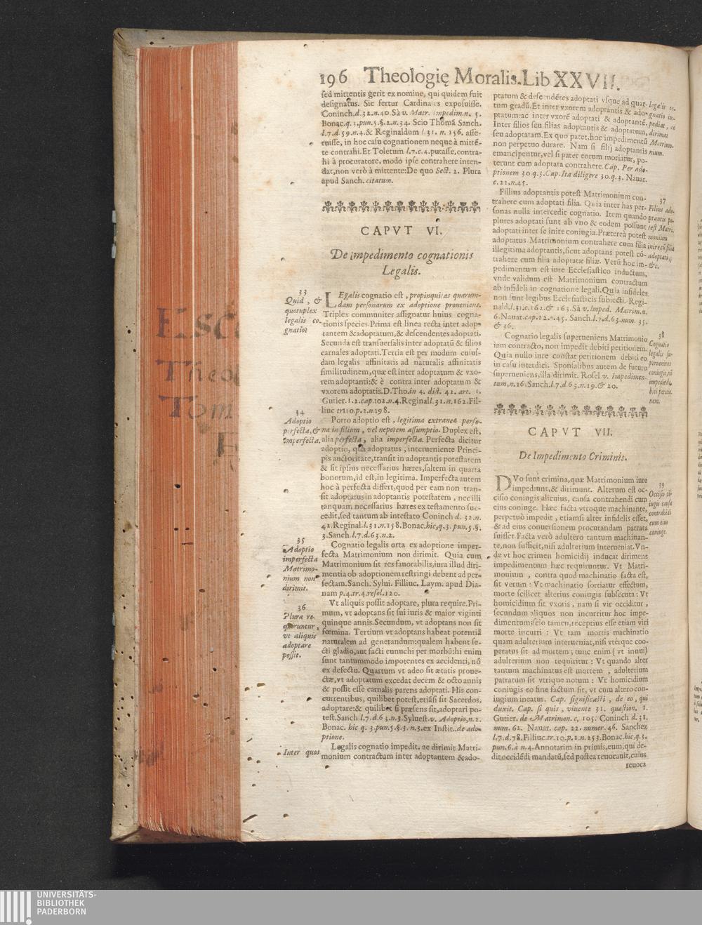 3,2: R. P. Antonii De Escobar Et Mendoza, Vallisoletani, Societatis Iesv Theologi, Vniversæ Theologiæ Moralis, Receptiores Absqve Lite Sententiæ nec-non Problematicae Disquisitiones ... Tomus ... : . Tomi Tertii Pars Altera / Matrimonii Sacramentum. Quatuor Libris Tractatus continet de Sponsalibus, de Matrimonij Essentia, Consensu Recto, Clandestino, Coacto, ac Conditionato, de Debito coniugali, ac Diuortio, de Impedimentis, & Dispensationibus