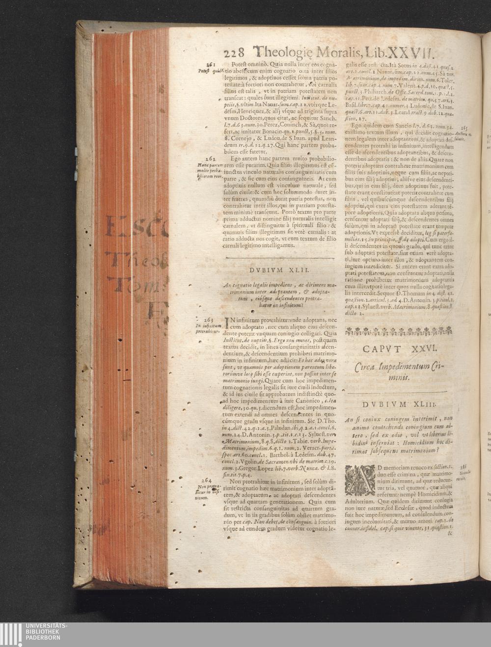3,2: R. P. Antonii De Escobar Et Mendoza, Vallisoletani, Societatis Iesv Theologi, Vniversæ Theologiæ Moralis, Receptiores Absqve Lite Sententiæ nec-non Problematicae Disquisitiones ... Tomus ... : . Tomi Tertii Pars Altera / Matrimonii Sacramentum. Quatuor Libris Tractatus continet de Sponsalibus, de Matrimonij Essentia, Consensu Recto, Clandestino, Coacto, ac Conditionato, de Debito coniugali, ac Diuortio, de Impedimentis, & Dispensationibus