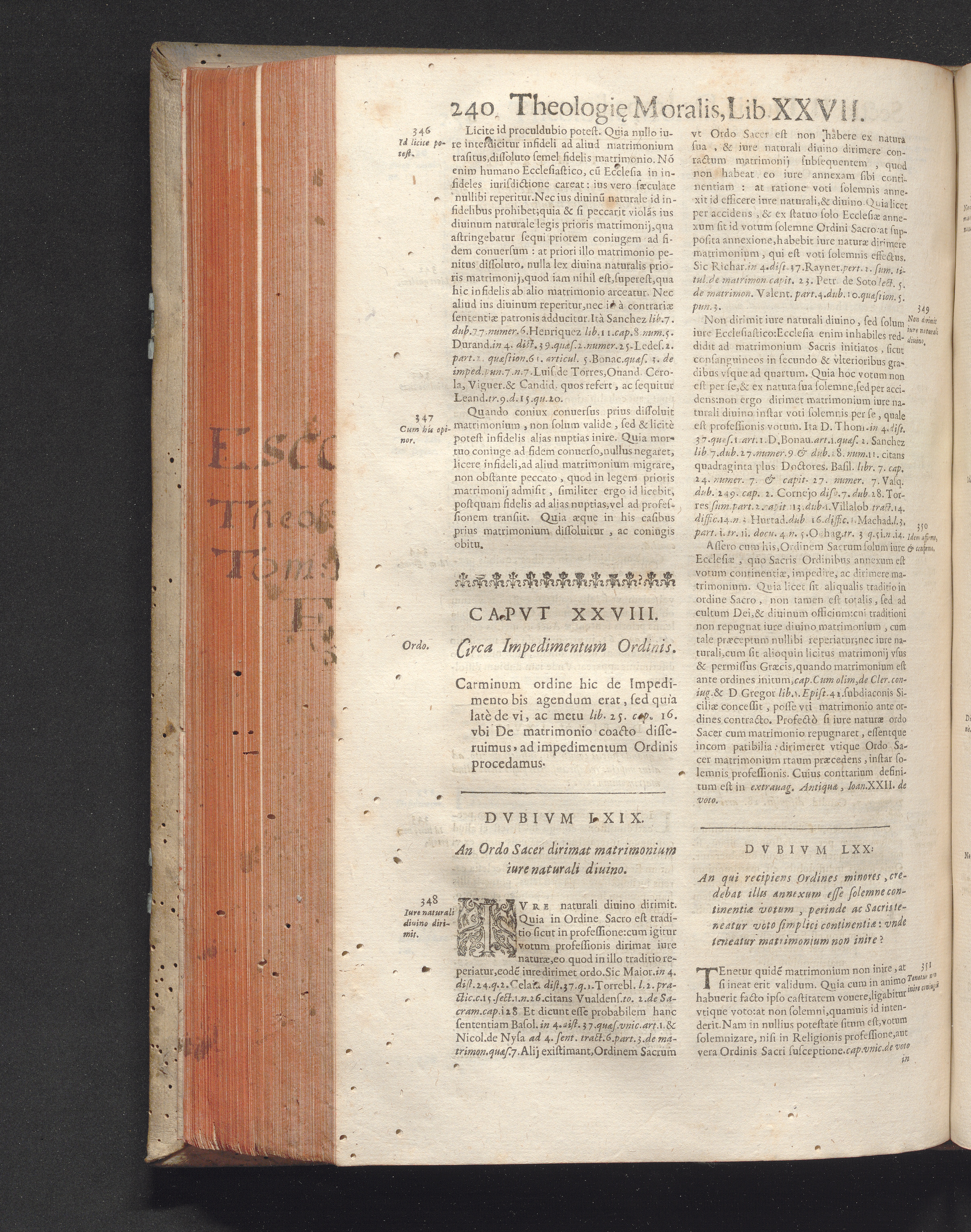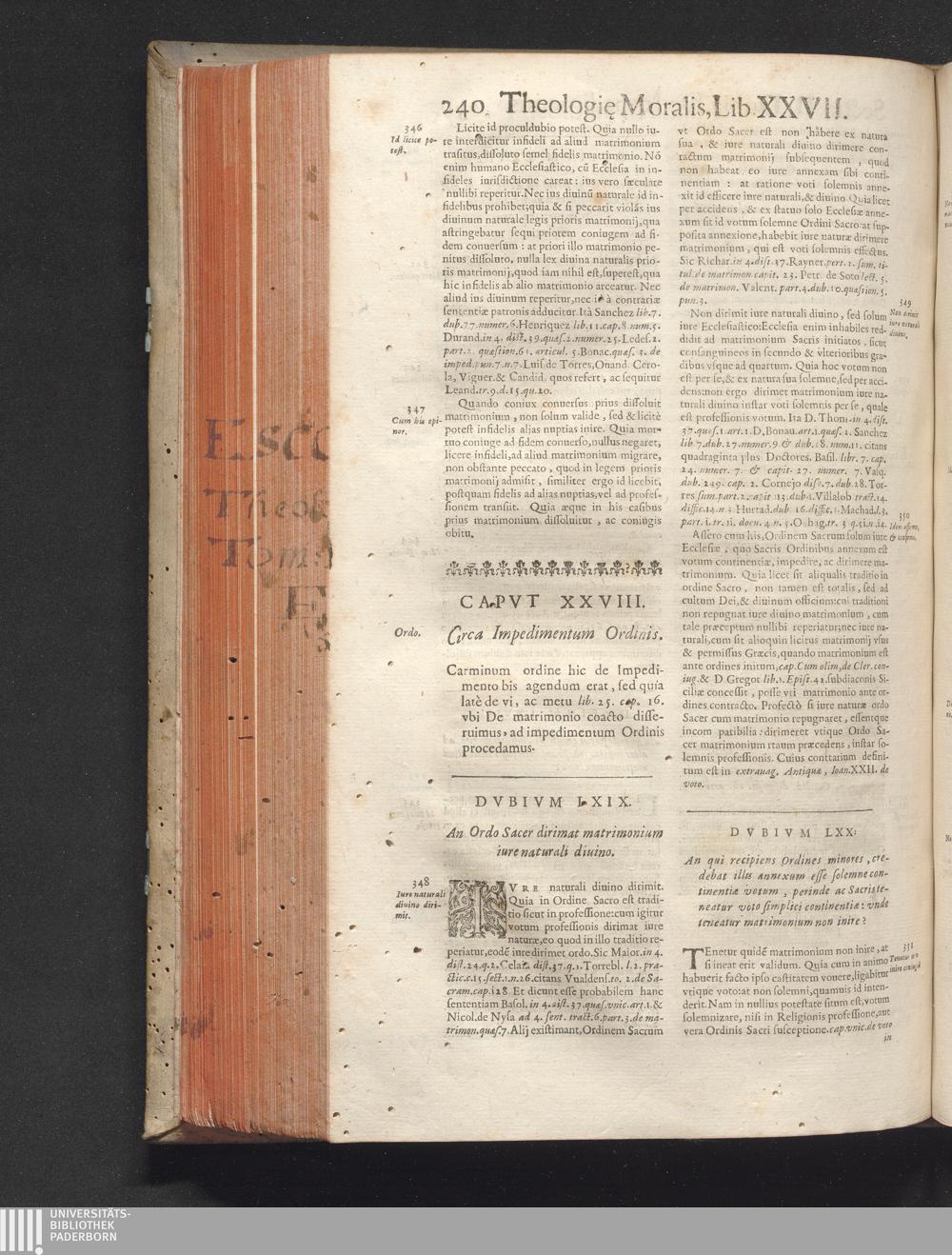 3,2: R. P. Antonii De Escobar Et Mendoza, Vallisoletani, Societatis Iesv Theologi, Vniversæ Theologiæ Moralis, Receptiores Absqve Lite Sententiæ nec-non Problematicae Disquisitiones ... Tomus ... : . Tomi Tertii Pars Altera / Matrimonii Sacramentum. Quatuor Libris Tractatus continet de Sponsalibus, de Matrimonij Essentia, Consensu Recto, Clandestino, Coacto, ac Conditionato, de Debito coniugali, ac Diuortio, de Impedimentis, & Dispensationibus