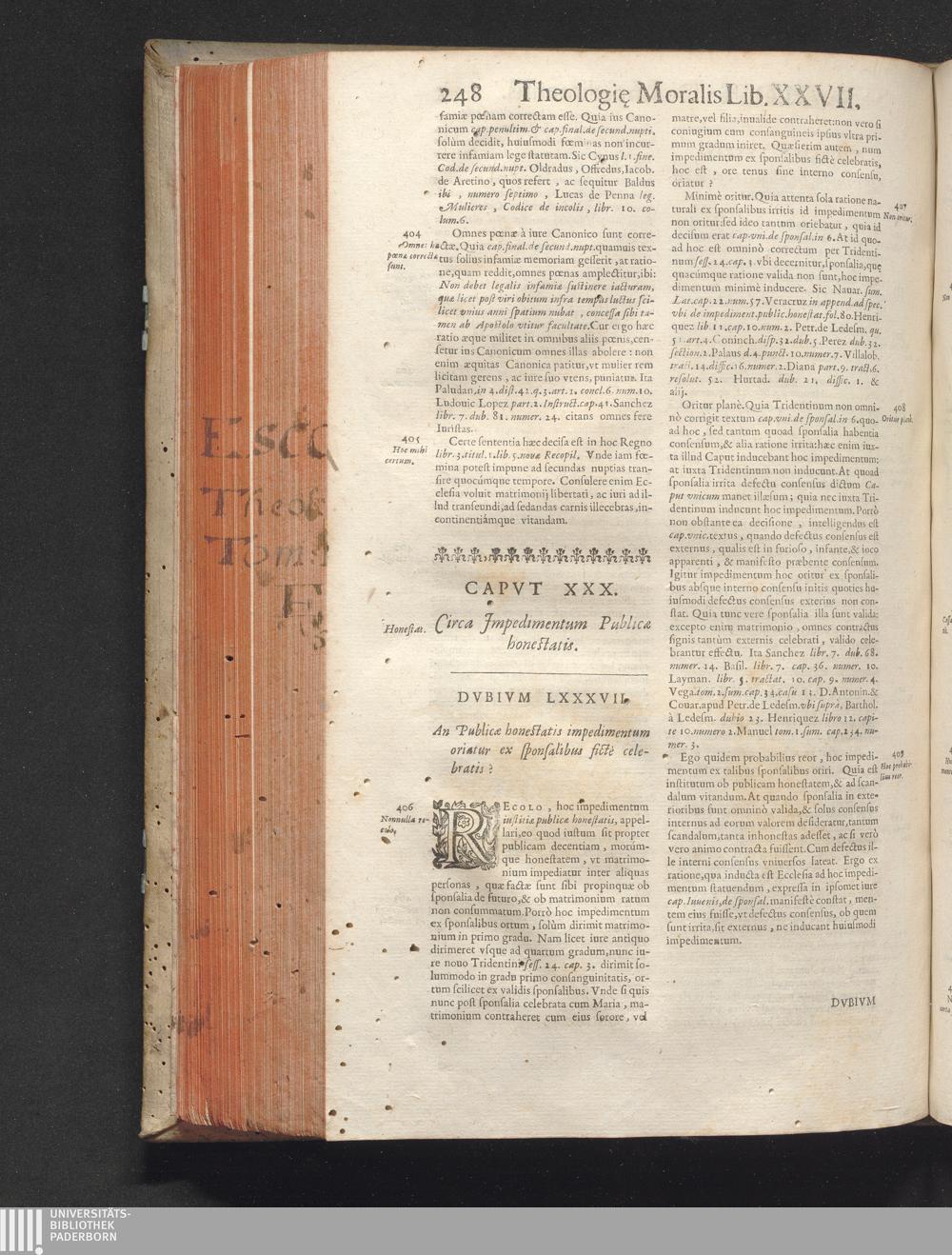 3,2: R. P. Antonii De Escobar Et Mendoza, Vallisoletani, Societatis Iesv Theologi, Vniversæ Theologiæ Moralis, Receptiores Absqve Lite Sententiæ nec-non Problematicae Disquisitiones ... Tomus ... : . Tomi Tertii Pars Altera / Matrimonii Sacramentum. Quatuor Libris Tractatus continet de Sponsalibus, de Matrimonij Essentia, Consensu Recto, Clandestino, Coacto, ac Conditionato, de Debito coniugali, ac Diuortio, de Impedimentis, & Dispensationibus