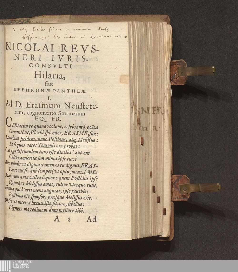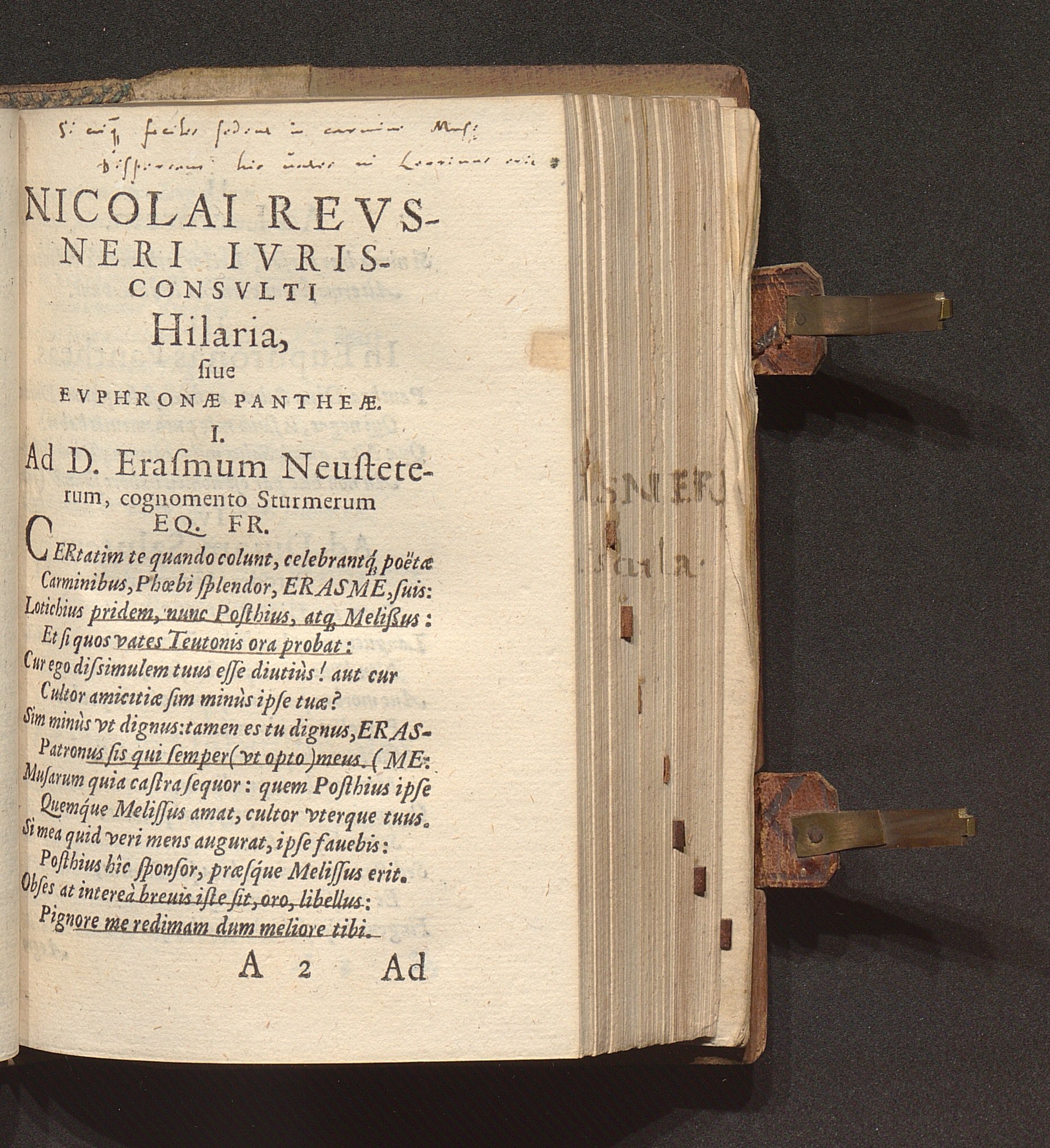 I. Ad D. Erasmum Neusteterum, cognomento Sturmerum EQ. Fr.