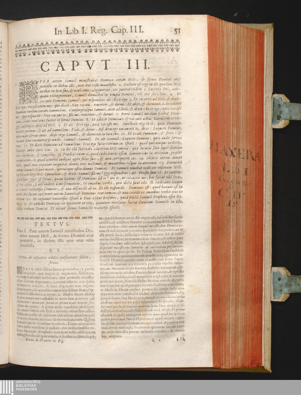 1 (1672) R. P. Emanvelis De Naxera Toletani, E Societate Iesv, Sacrarvm Litterarvm Interpretis, Regiiqve Concionatoris. Excvrsvs Morales In Librum primum Regum : Opus non solùm Theologis; sed etiam verbi Divini Præconibus perutile. Cum quatuor Indicibus, Primo Paragraphorum, Secundo ad Conciones construendas, Tertio Locorum Sacræ Scripturæ, Quarto Rerum & Verborum. Pars Prima.