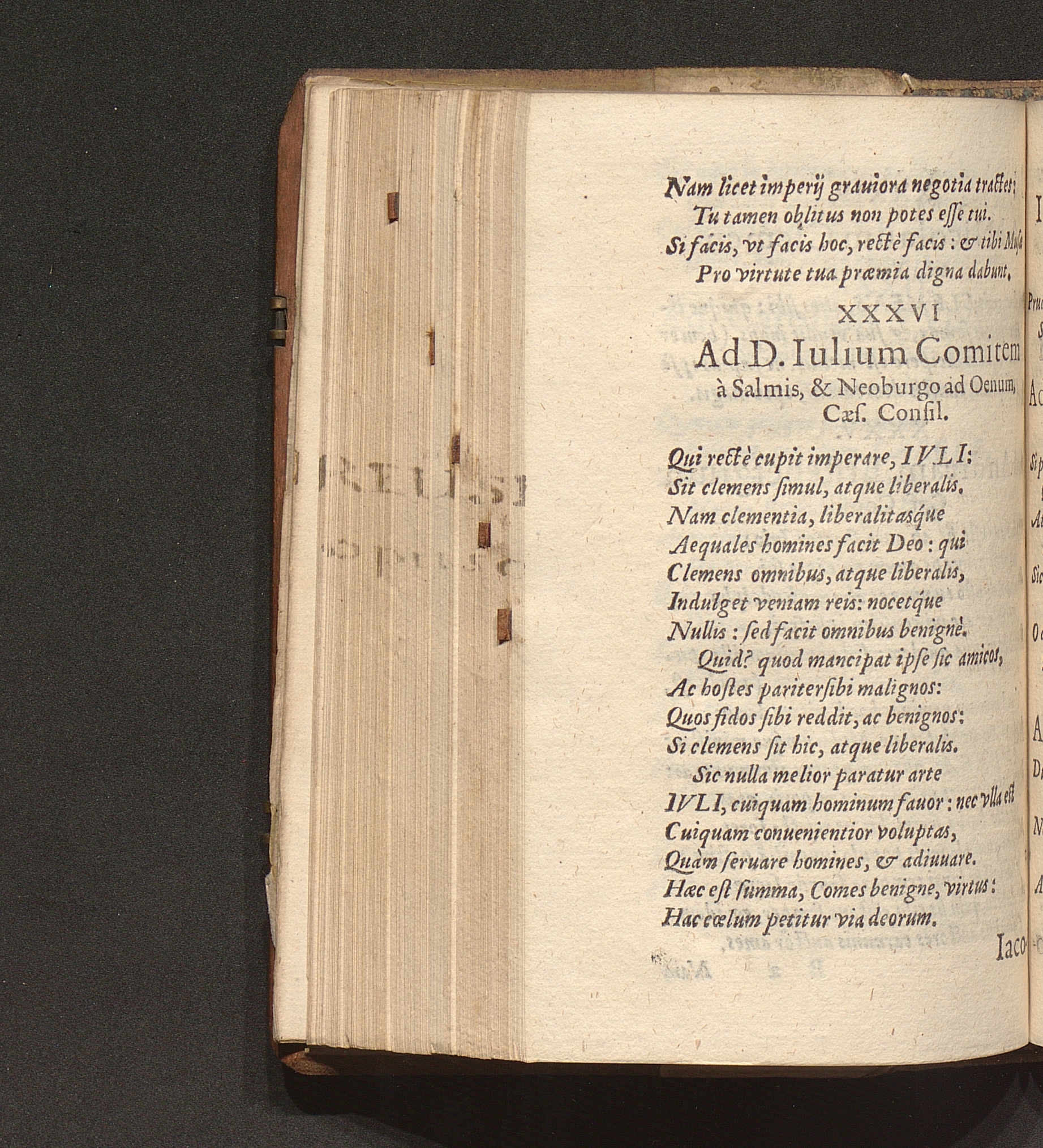 XXXVI. Ad D. Iulium Comitem à Salmis, & Neoburgo ad Oenum, Caes. Consil.