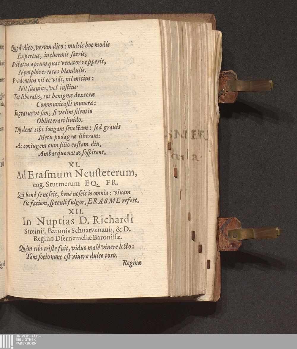 XII. In Nuptias D. Richardi Streinij, Baronis Schuarzenauij, & D. Reginae Dsernemeliae[...]