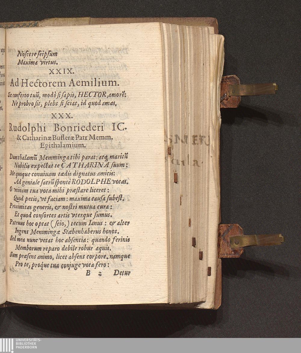XXX. Rudolphi Bonriederi IC. & Catharinae Buflerae Patr. Memm. Epithalamium.