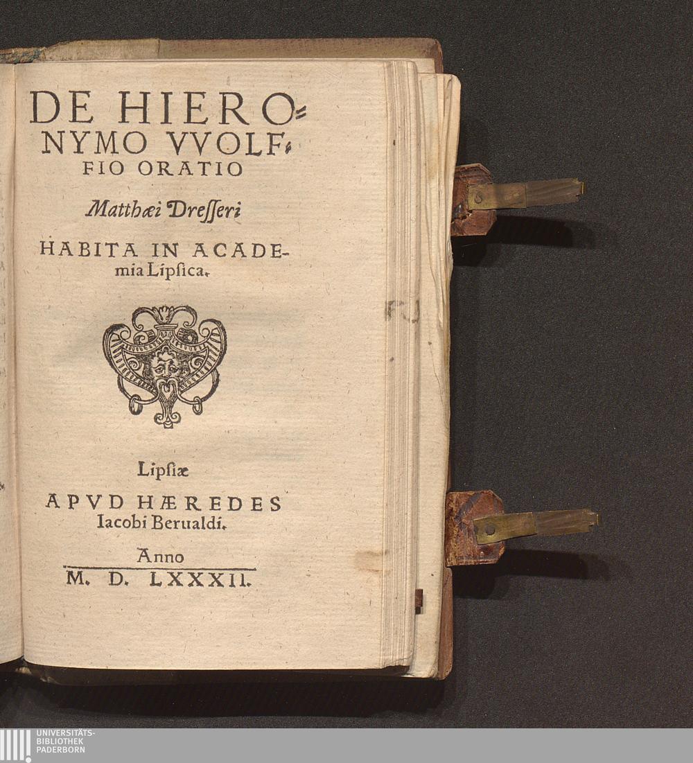 De Hieronymo VVolffio Oratio Matthaei Dresseri : Habita In Academia Lipsica