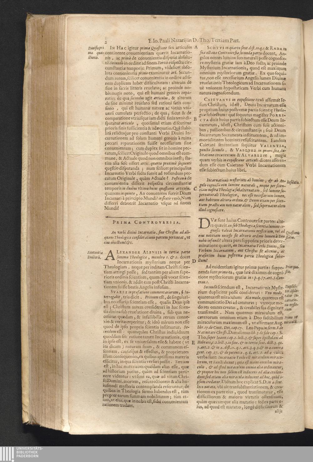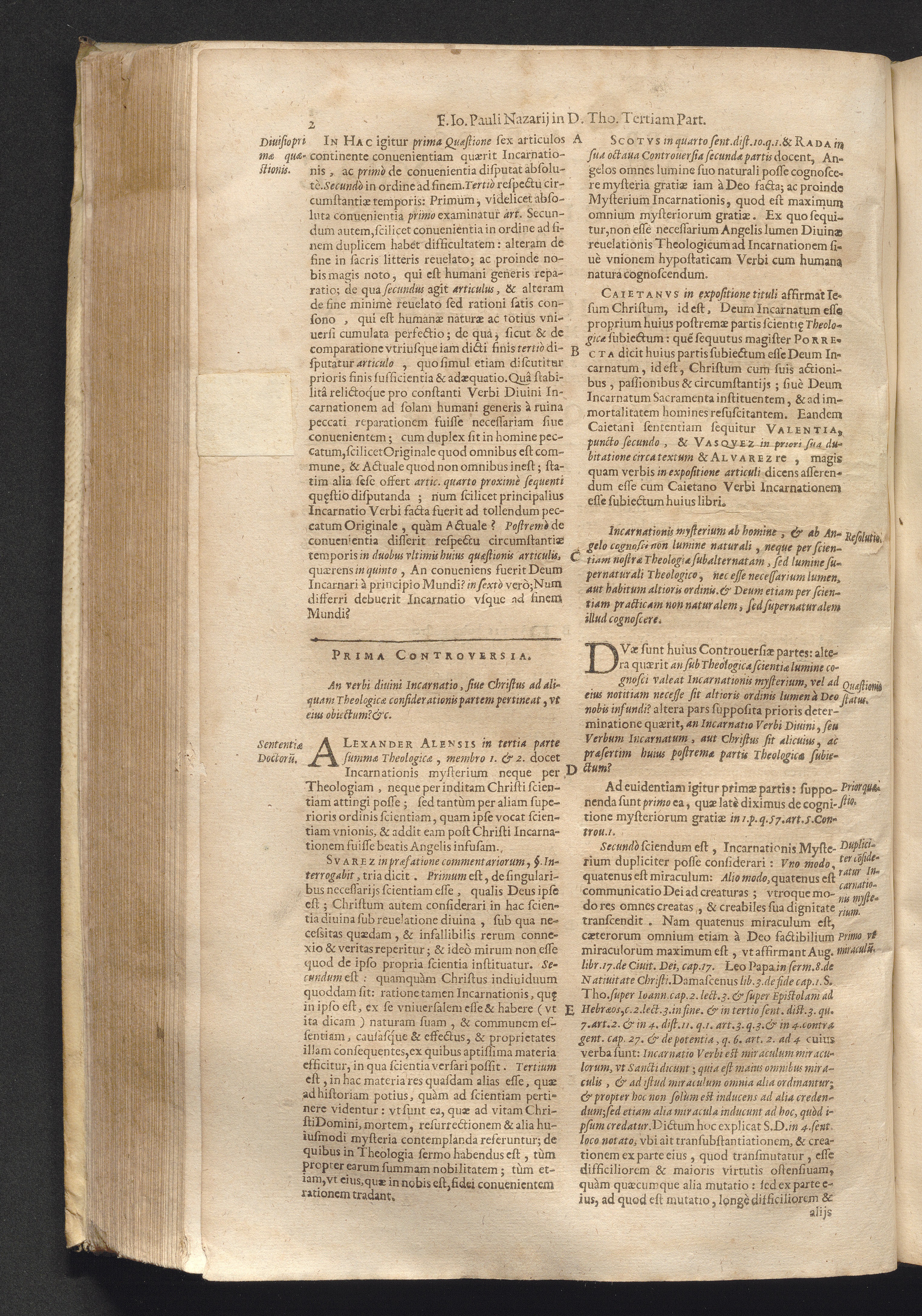 4 (1621) Commentaria et disputationes scholastica in Summam D. Thomae Aquinatis / auctore Joanne Paulo Nazario. Tomvs Qvartvs / Jn Qvo Controversiæ Jnter Theologos Veteres Ac Recentiores De Incarnationis Christi Mysterio