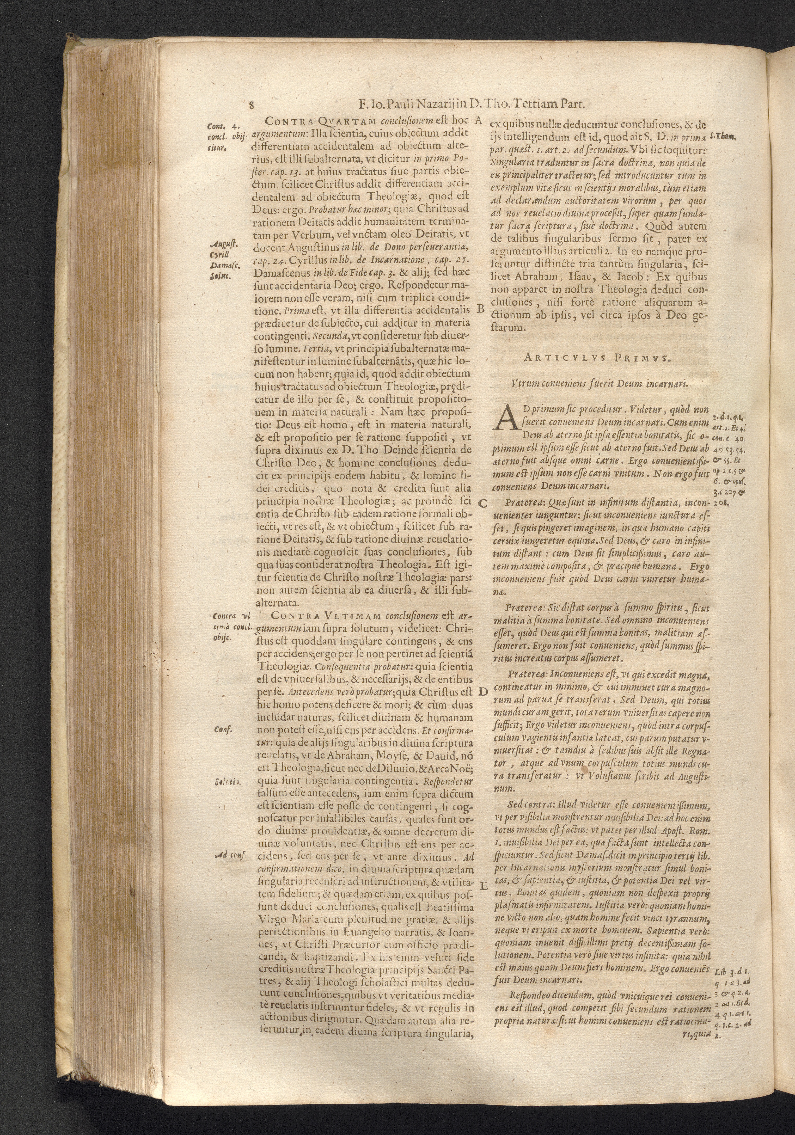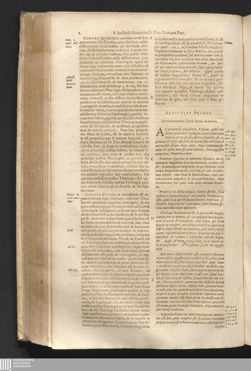 4 (1621) Commentaria et disputationes scholastica in Summam D. Thomae Aquinatis / auctore Joanne Paulo Nazario. Tomvs Qvartvs / Jn Qvo Controversiæ Jnter Theologos Veteres Ac Recentiores De Incarnationis Christi Mysterio