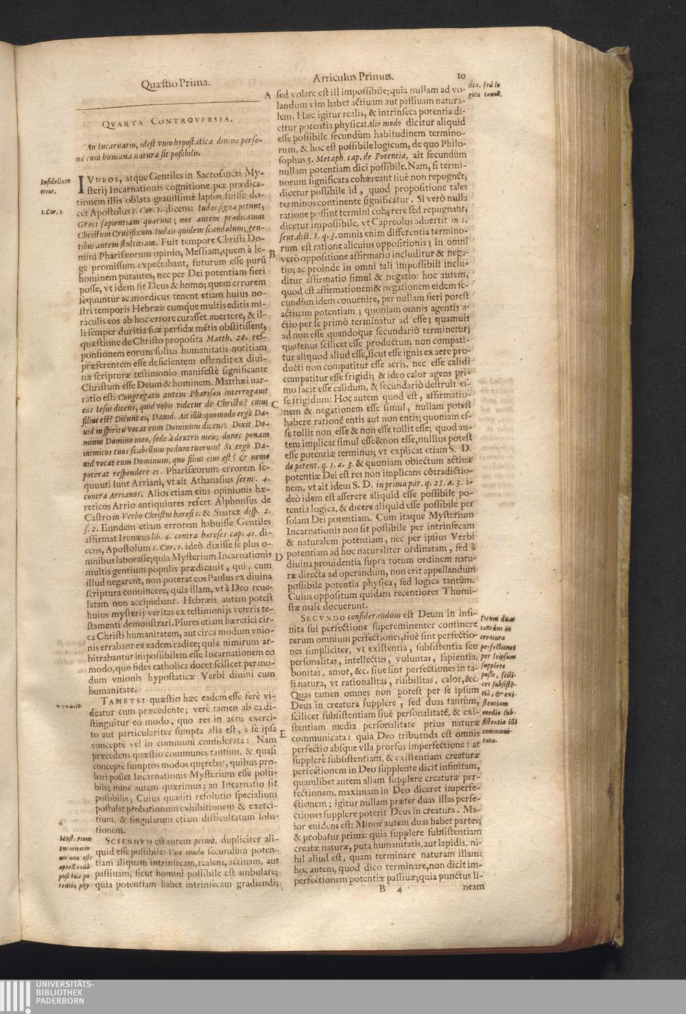 4 (1621) Commentaria et disputationes scholastica in Summam D. Thomae Aquinatis / auctore Joanne Paulo Nazario. Tomvs Qvartvs / Jn Qvo Controversiæ Jnter Theologos Veteres Ac Recentiores De Incarnationis Christi Mysterio