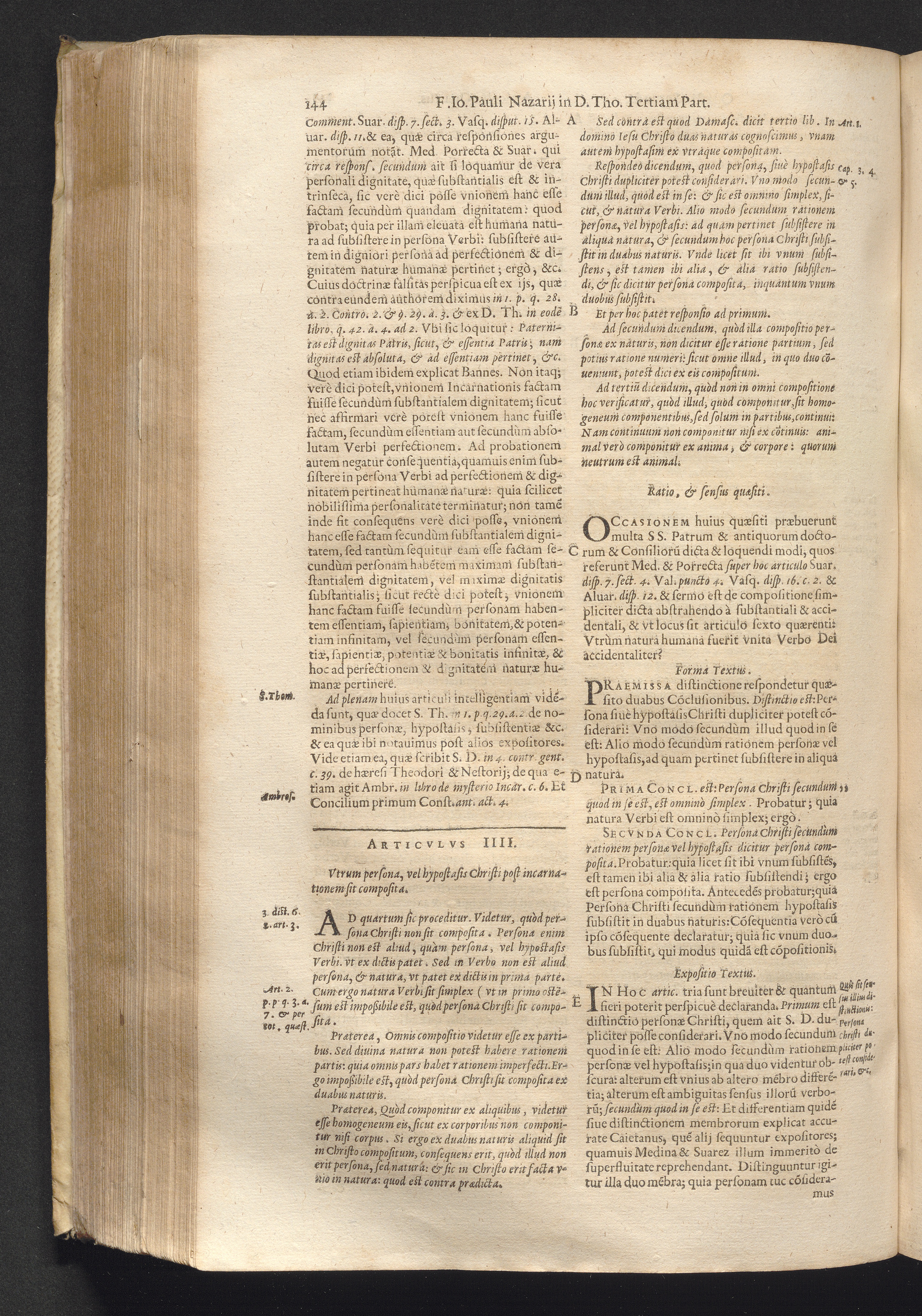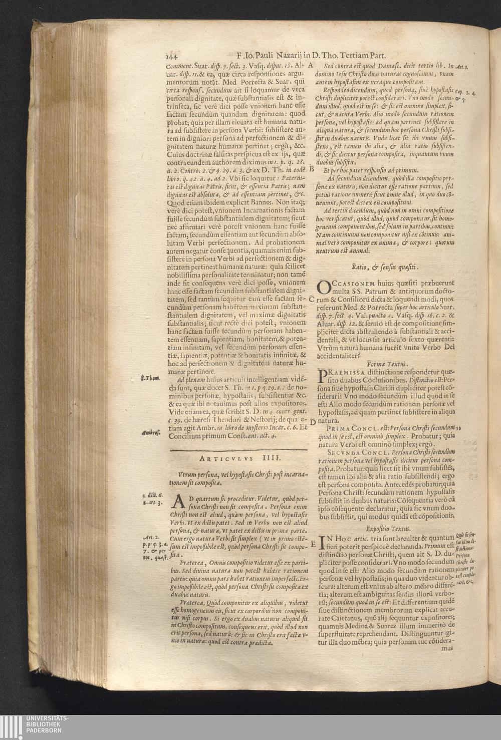 4 (1621) Commentaria et disputationes scholastica in Summam D. Thomae Aquinatis / auctore Joanne Paulo Nazario. Tomvs Qvartvs / Jn Qvo Controversiæ Jnter Theologos Veteres Ac Recentiores De Incarnationis Christi Mysterio