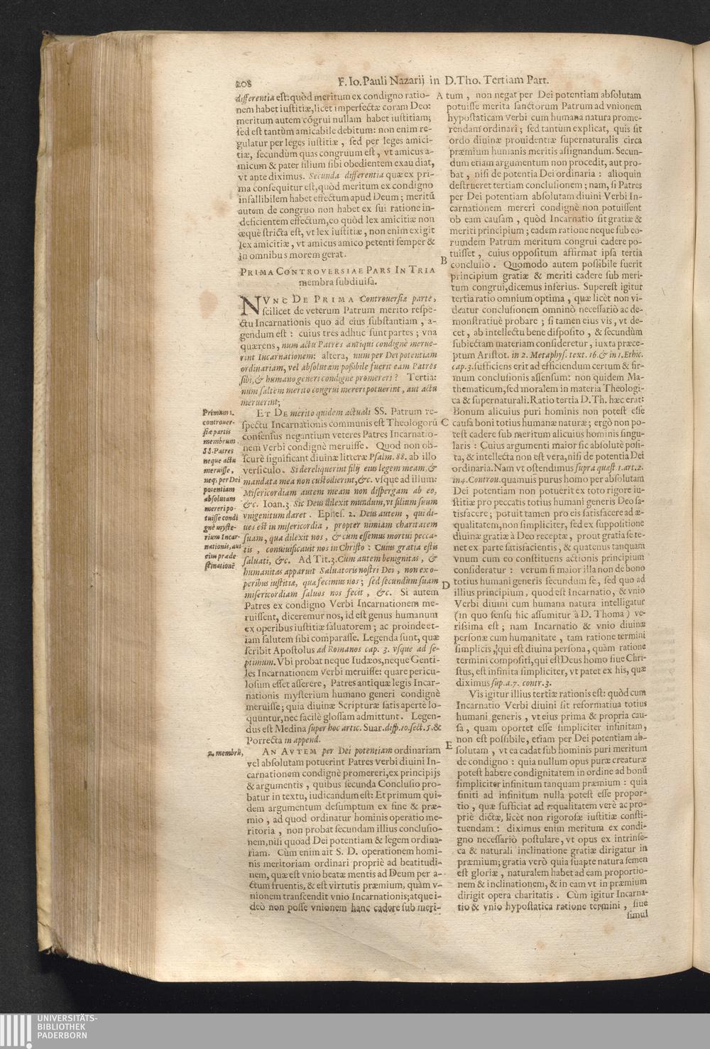 4 (1621) Commentaria et disputationes scholastica in Summam D. Thomae Aquinatis / auctore Joanne Paulo Nazario. Tomvs Qvartvs / Jn Qvo Controversiæ Jnter Theologos Veteres Ac Recentiores De Incarnationis Christi Mysterio