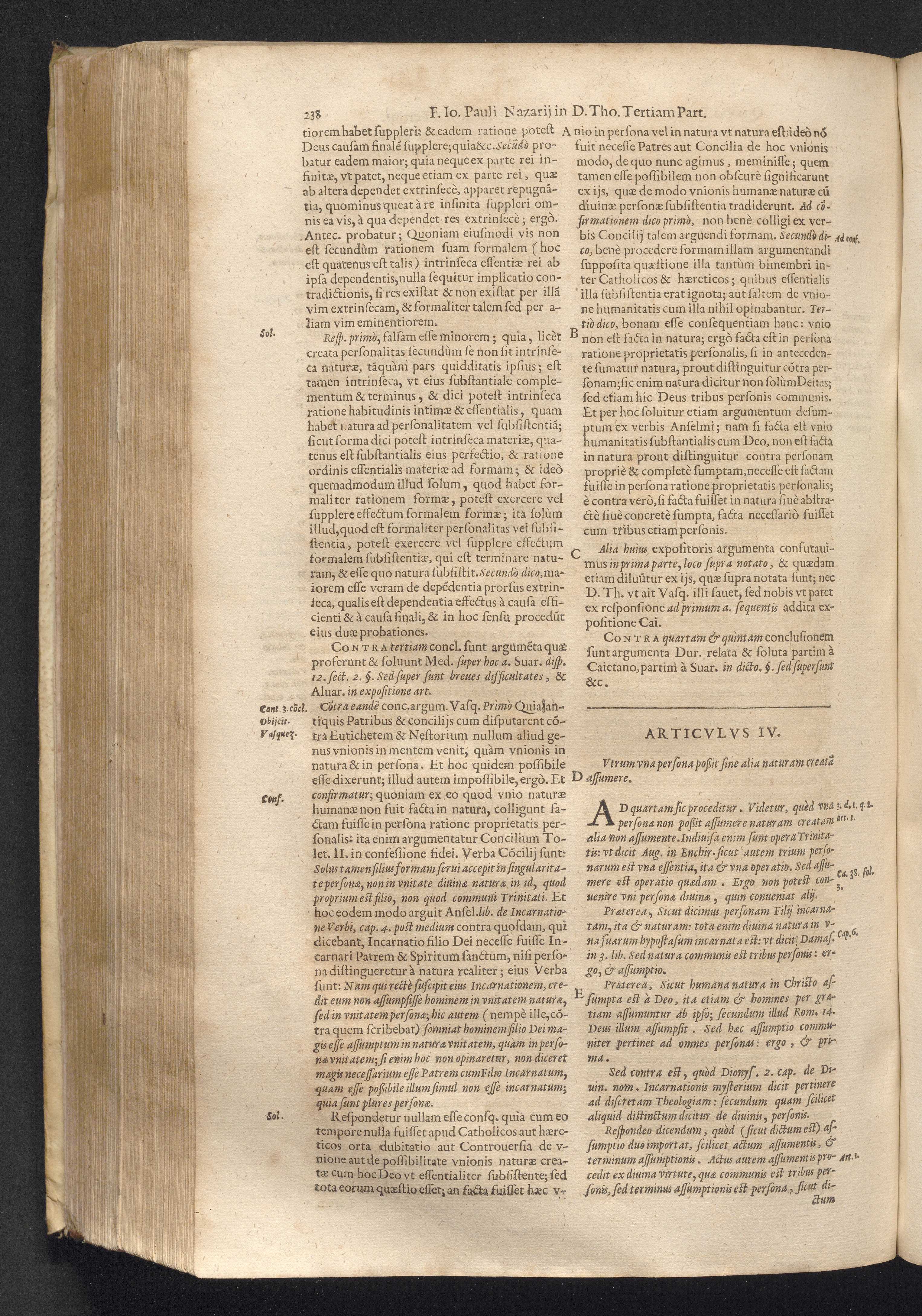 4 (1621) Commentaria et disputationes scholastica in Summam D. Thomae Aquinatis / auctore Joanne Paulo Nazario. Tomvs Qvartvs / Jn Qvo Controversiæ Jnter Theologos Veteres Ac Recentiores De Incarnationis Christi Mysterio