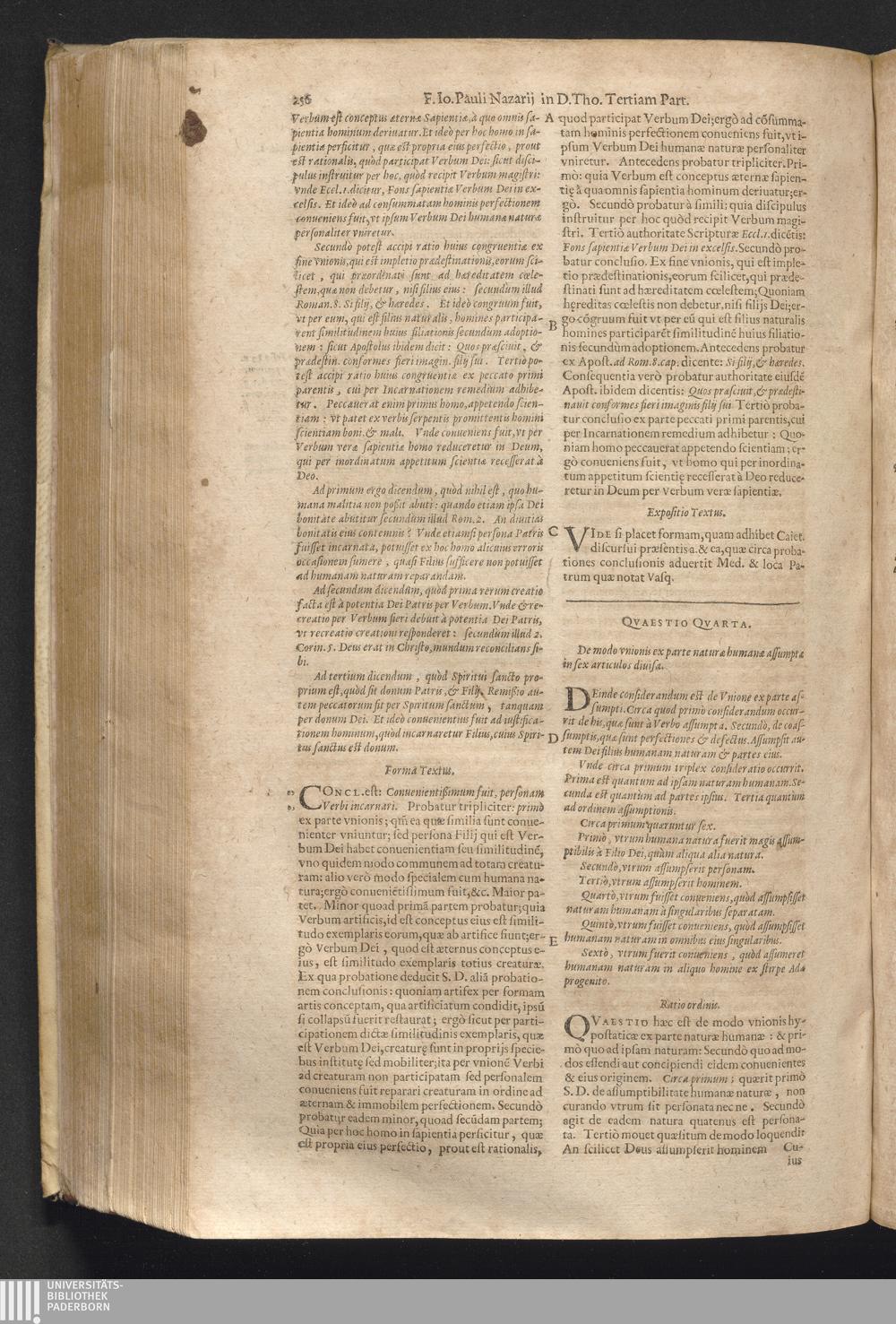 4 (1621) Commentaria et disputationes scholastica in Summam D. Thomae Aquinatis / auctore Joanne Paulo Nazario. Tomvs Qvartvs / Jn Qvo Controversiæ Jnter Theologos Veteres Ac Recentiores De Incarnationis Christi Mysterio