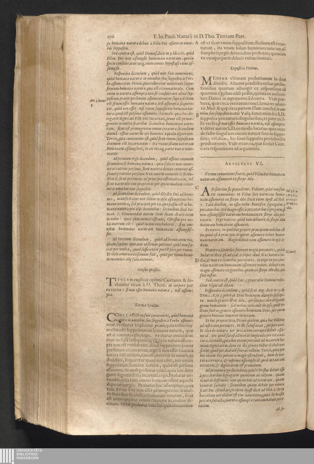 4 (1621) Commentaria et disputationes scholastica in Summam D. Thomae Aquinatis / auctore Joanne Paulo Nazario. Tomvs Qvartvs / Jn Qvo Controversiæ Jnter Theologos Veteres Ac Recentiores De Incarnationis Christi Mysterio