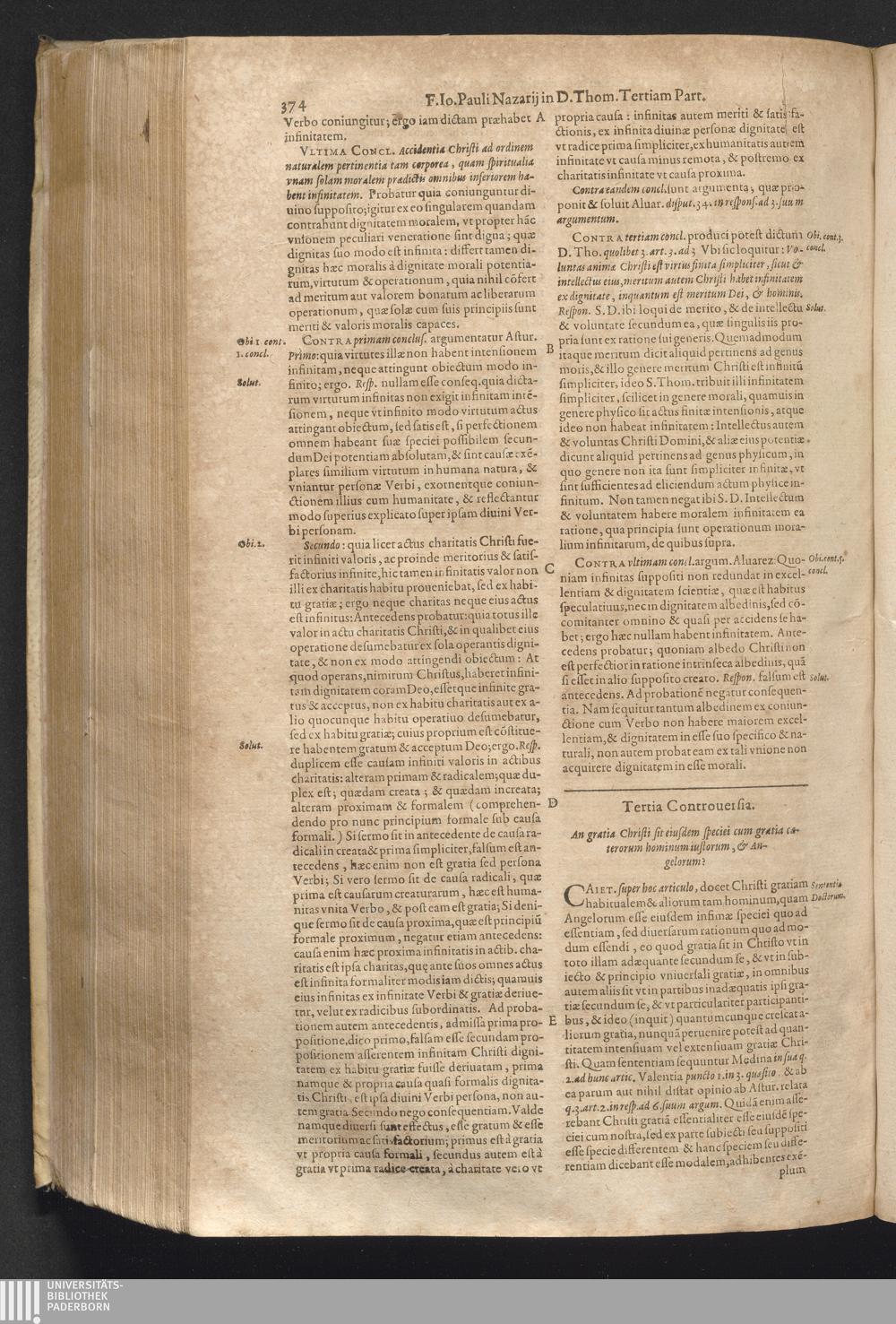 4 (1621) Commentaria et disputationes scholastica in Summam D. Thomae Aquinatis / auctore Joanne Paulo Nazario. Tomvs Qvartvs / Jn Qvo Controversiæ Jnter Theologos Veteres Ac Recentiores De Incarnationis Christi Mysterio
