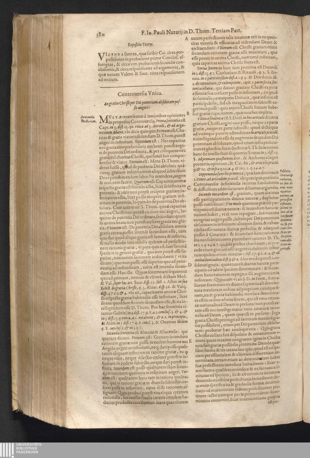 4 (1621) Commentaria et disputationes scholastica in Summam D. Thomae Aquinatis / auctore Joanne Paulo Nazario. Tomvs Qvartvs / Jn Qvo Controversiæ Jnter Theologos Veteres Ac Recentiores De Incarnationis Christi Mysterio