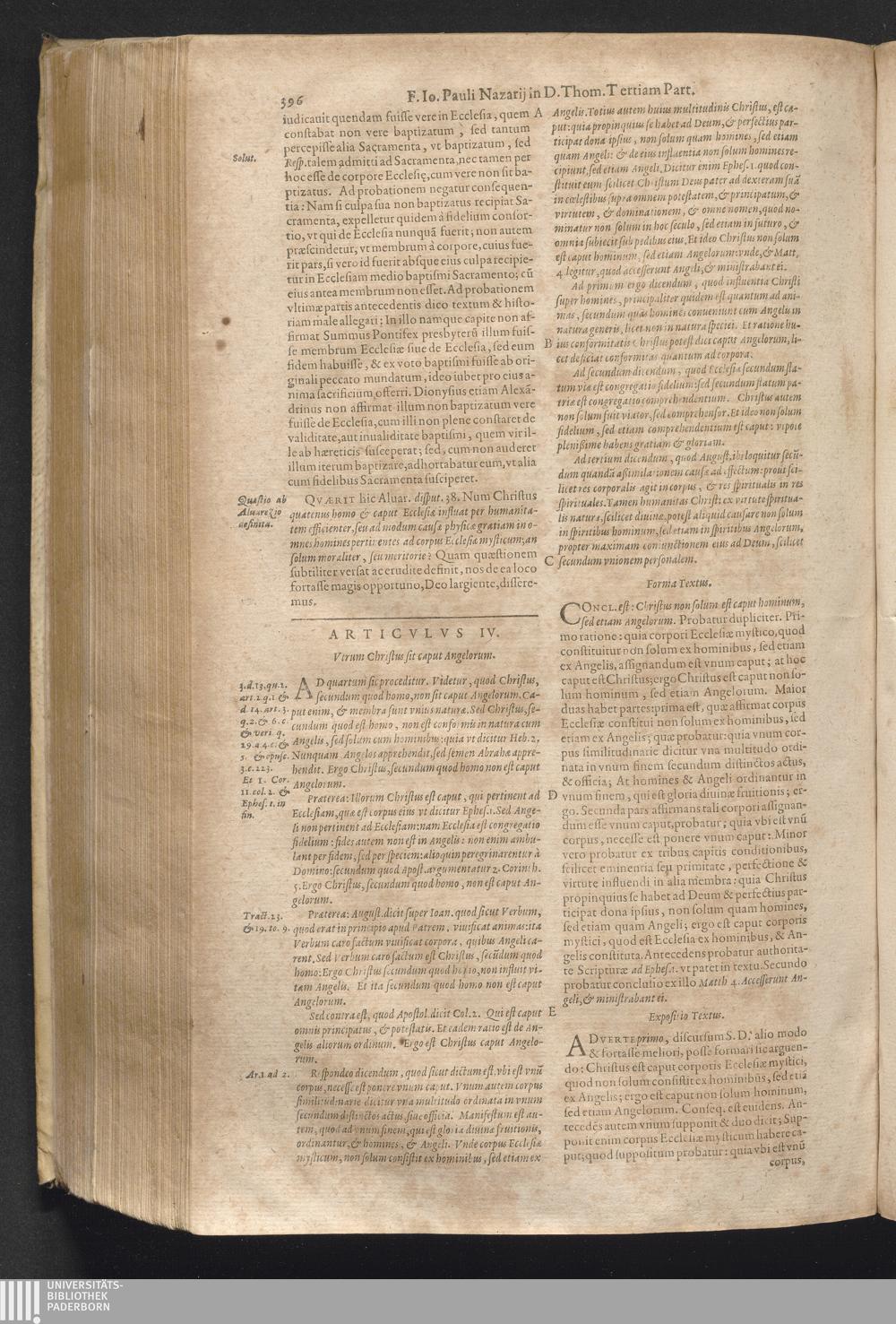 4 (1621) Commentaria et disputationes scholastica in Summam D. Thomae Aquinatis / auctore Joanne Paulo Nazario. Tomvs Qvartvs / Jn Qvo Controversiæ Jnter Theologos Veteres Ac Recentiores De Incarnationis Christi Mysterio