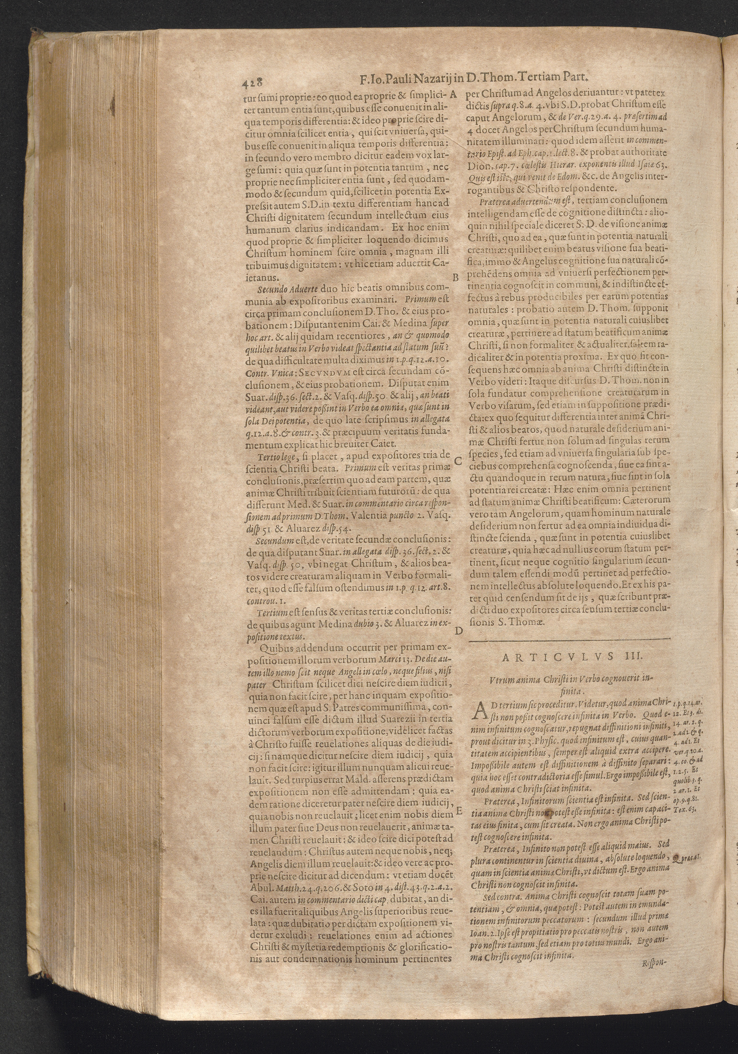 4 (1621) Commentaria et disputationes scholastica in Summam D. Thomae Aquinatis / auctore Joanne Paulo Nazario. Tomvs Qvartvs / Jn Qvo Controversiæ Jnter Theologos Veteres Ac Recentiores De Incarnationis Christi Mysterio