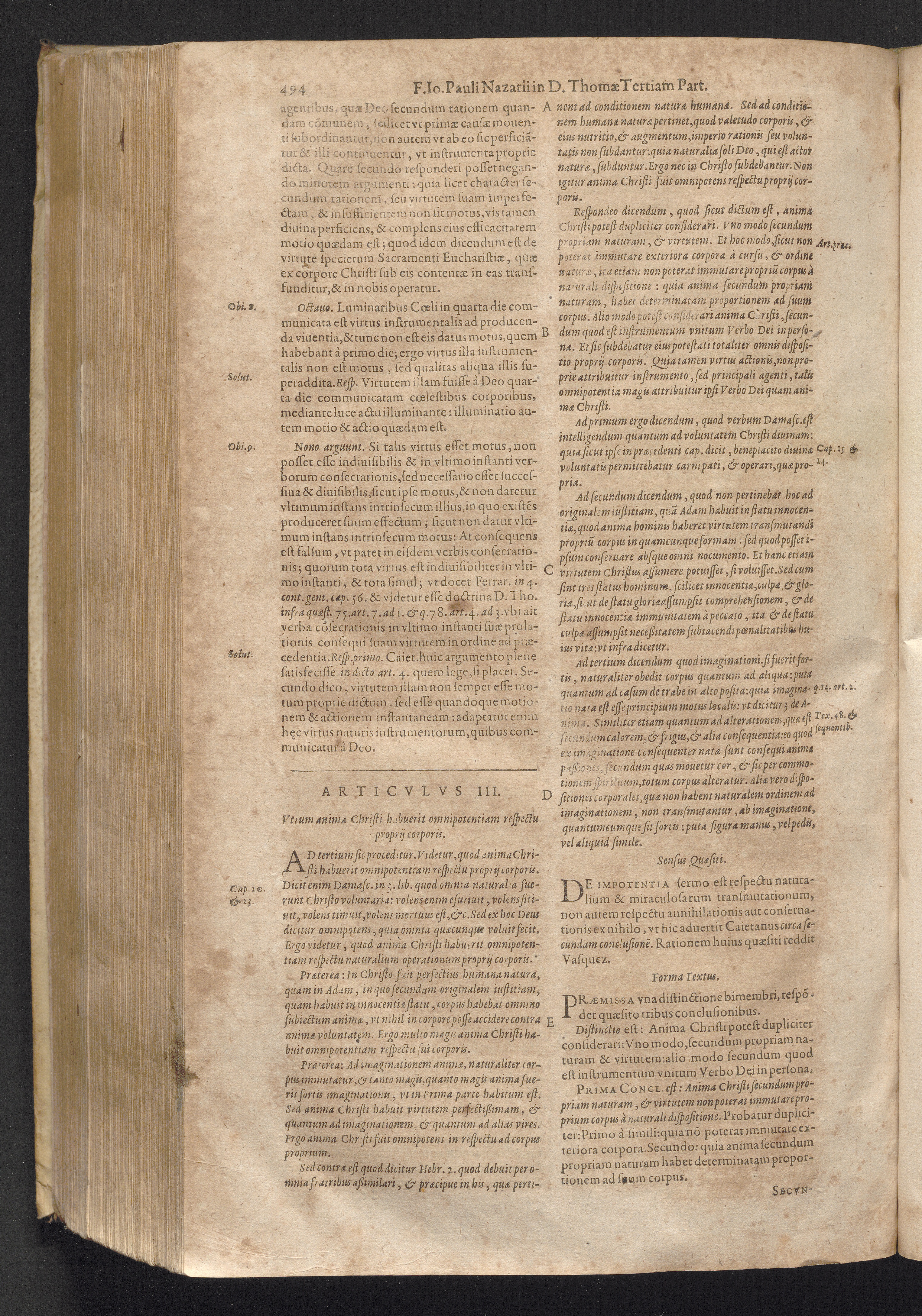 4 (1621) Commentaria et disputationes scholastica in Summam D. Thomae Aquinatis / auctore Joanne Paulo Nazario. Tomvs Qvartvs / Jn Qvo Controversiæ Jnter Theologos Veteres Ac Recentiores De Incarnationis Christi Mysterio