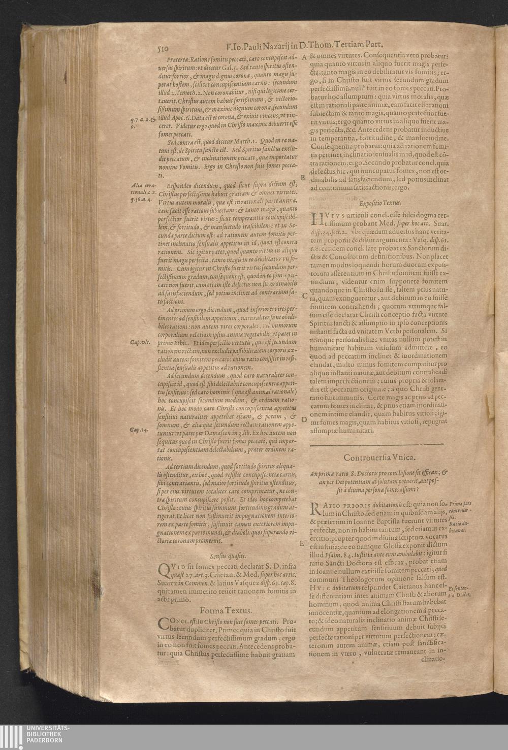 4 (1621) Commentaria et disputationes scholastica in Summam D. Thomae Aquinatis / auctore Joanne Paulo Nazario. Tomvs Qvartvs / Jn Qvo Controversiæ Jnter Theologos Veteres Ac Recentiores De Incarnationis Christi Mysterio