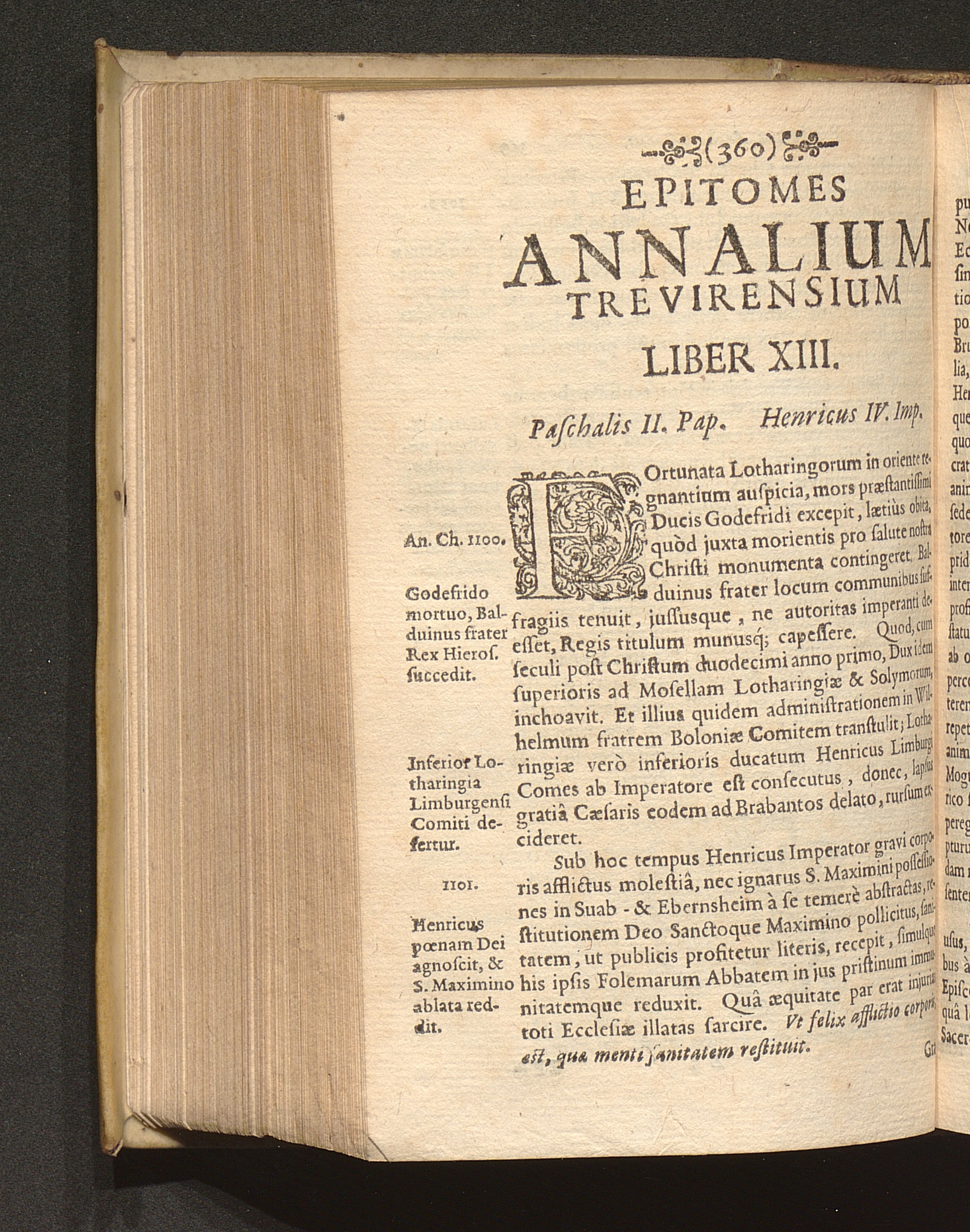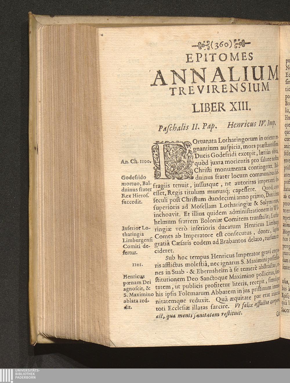 Epitome Annalivm Trevirensium : Qva Antiquae Urbis Ac Dioecesis Trevericae, In Politico Et Ecclesiastico Regimine Exordia, Progressúsque, Ac Res Bello Ac Pace Administratae, Brevi Claroque Ordine digestae sunt, cum aliis Romani Imperii Gestis eidem conjunctis / Per R. P. Jacobum Masenium è Societate Jesu