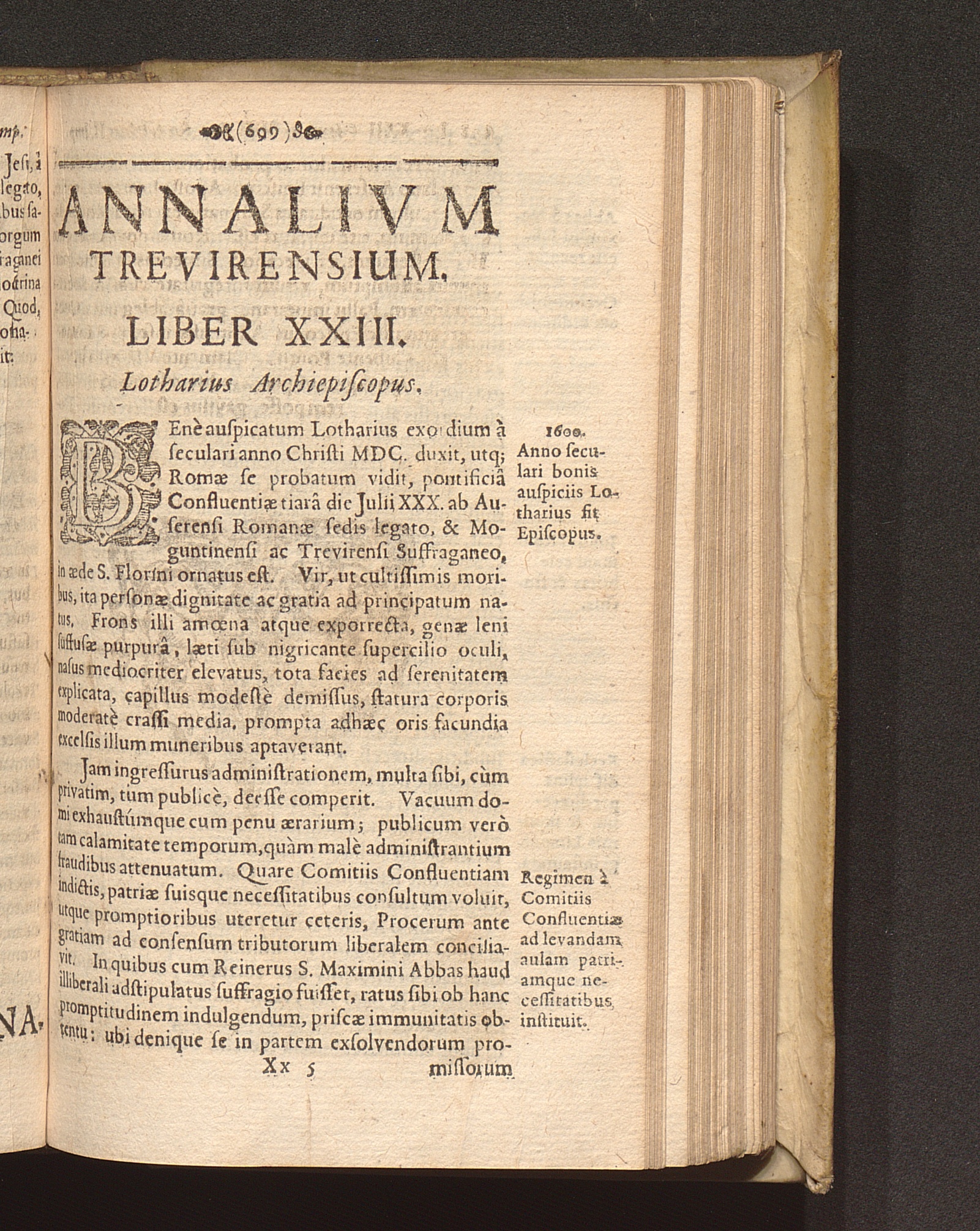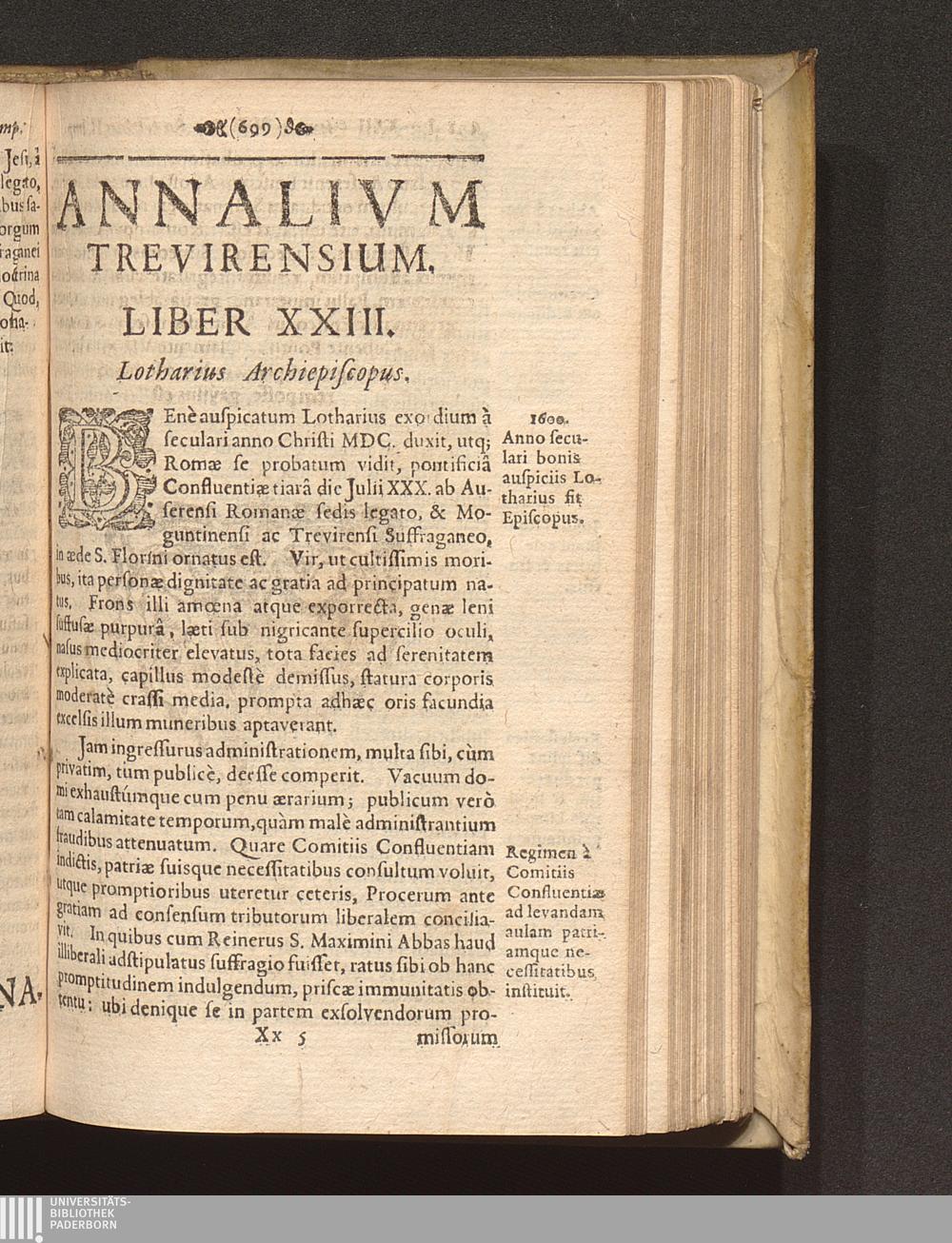 Epitome Annalivm Trevirensium : Qva Antiquae Urbis Ac Dioecesis Trevericae, In Politico Et Ecclesiastico Regimine Exordia, Progressúsque, Ac Res Bello Ac Pace Administratae, Brevi Claroque Ordine digestae sunt, cum aliis Romani Imperii Gestis eidem conjunctis / Per R. P. Jacobum Masenium è Societate Jesu