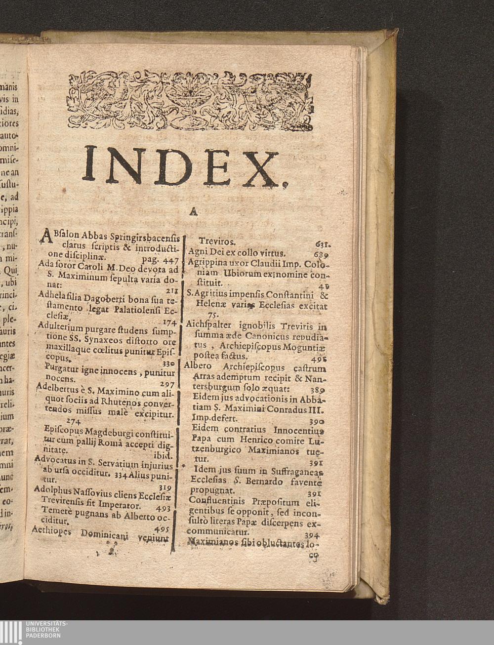 Epitome Annalivm Trevirensium : Qva Antiquae Urbis Ac Dioecesis Trevericae, In Politico Et Ecclesiastico Regimine Exordia, Progressúsque, Ac Res Bello Ac Pace Administratae, Brevi Claroque Ordine digestae sunt, cum aliis Romani Imperii Gestis eidem conjunctis / Per R. P. Jacobum Masenium è Societate Jesu