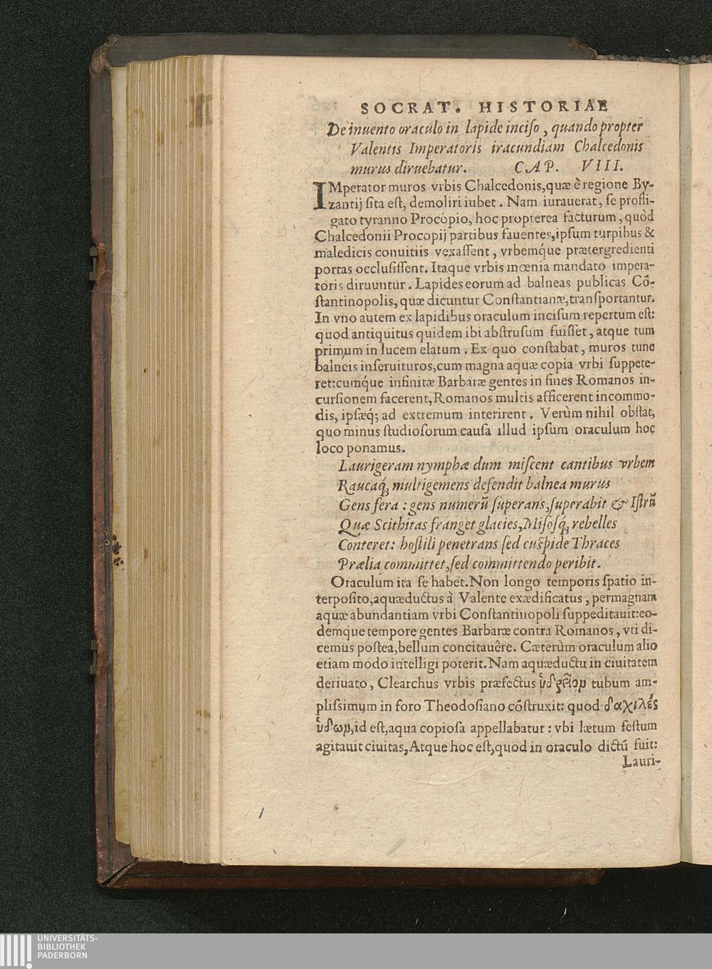 Secvnda (1569) HISTORIAE EC||CLESIASTICAE PARS || SECVNDA, QVA CON-||TINENTVR || Socratis Scolastici Constantinopolitani lib. 7. || Theodoriti Cyrensis episcopi lib. 5.|| Ioanne Christophorsono interprete.||