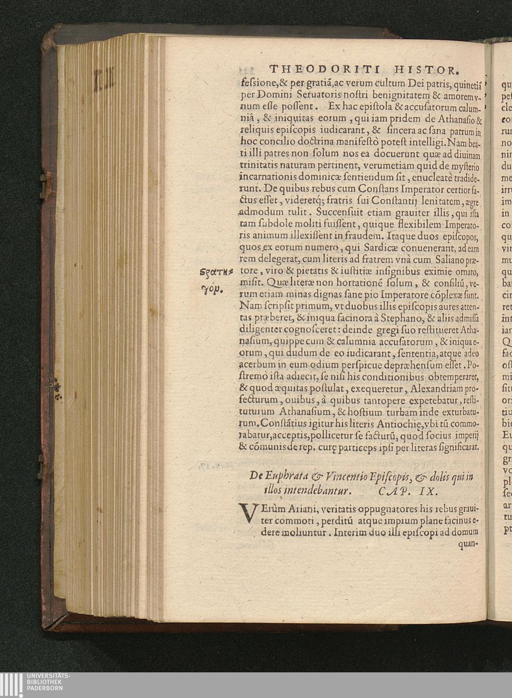 Secvnda (1569) HISTORIAE EC||CLESIASTICAE PARS || SECVNDA, QVA CON-||TINENTVR || Socratis Scolastici Constantinopolitani lib. 7. || Theodoriti Cyrensis episcopi lib. 5.|| Ioanne Christophorsono interprete.||