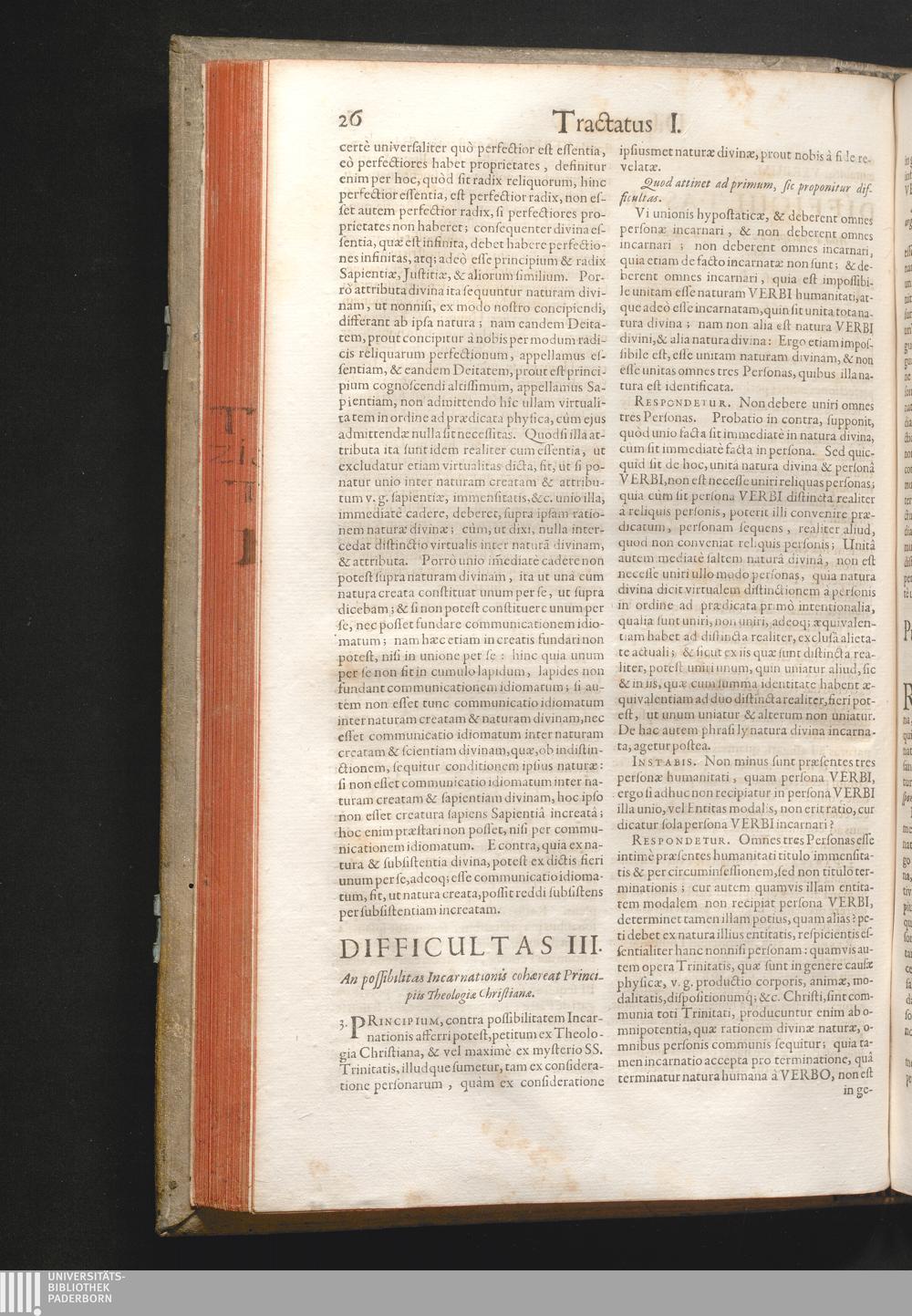 Difficultas III. An possibilitas Incarnationis cohæret principiis Theologiæ Chri[...]
