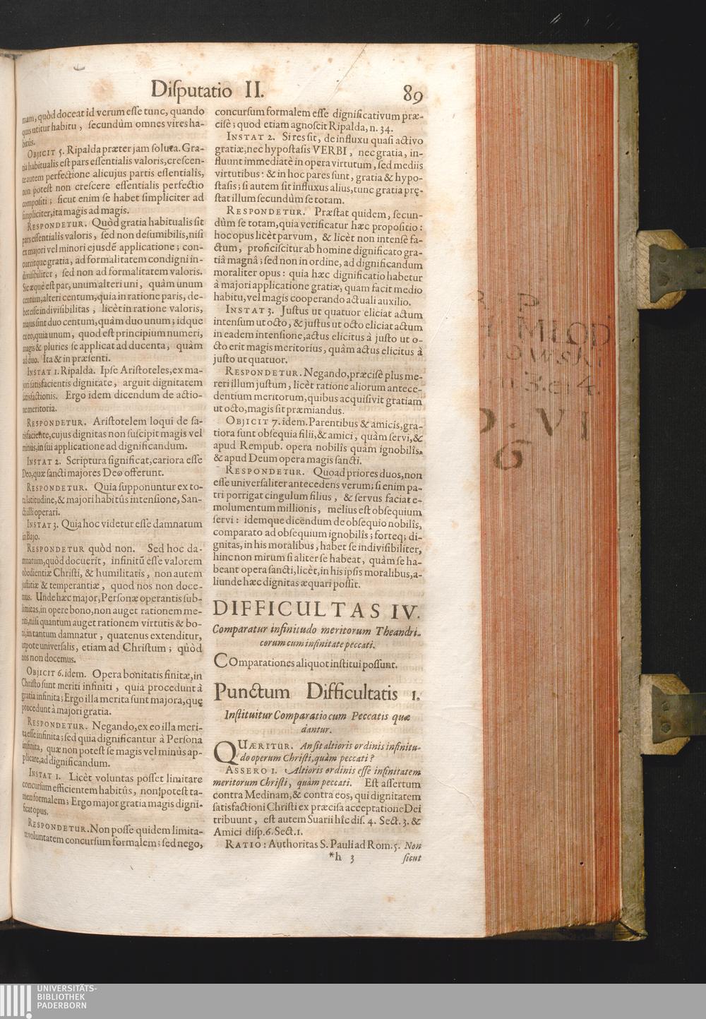 Difficultas IV. Comparatur infinitudo meritorum Theandricorum, cum infinite pecc[...]