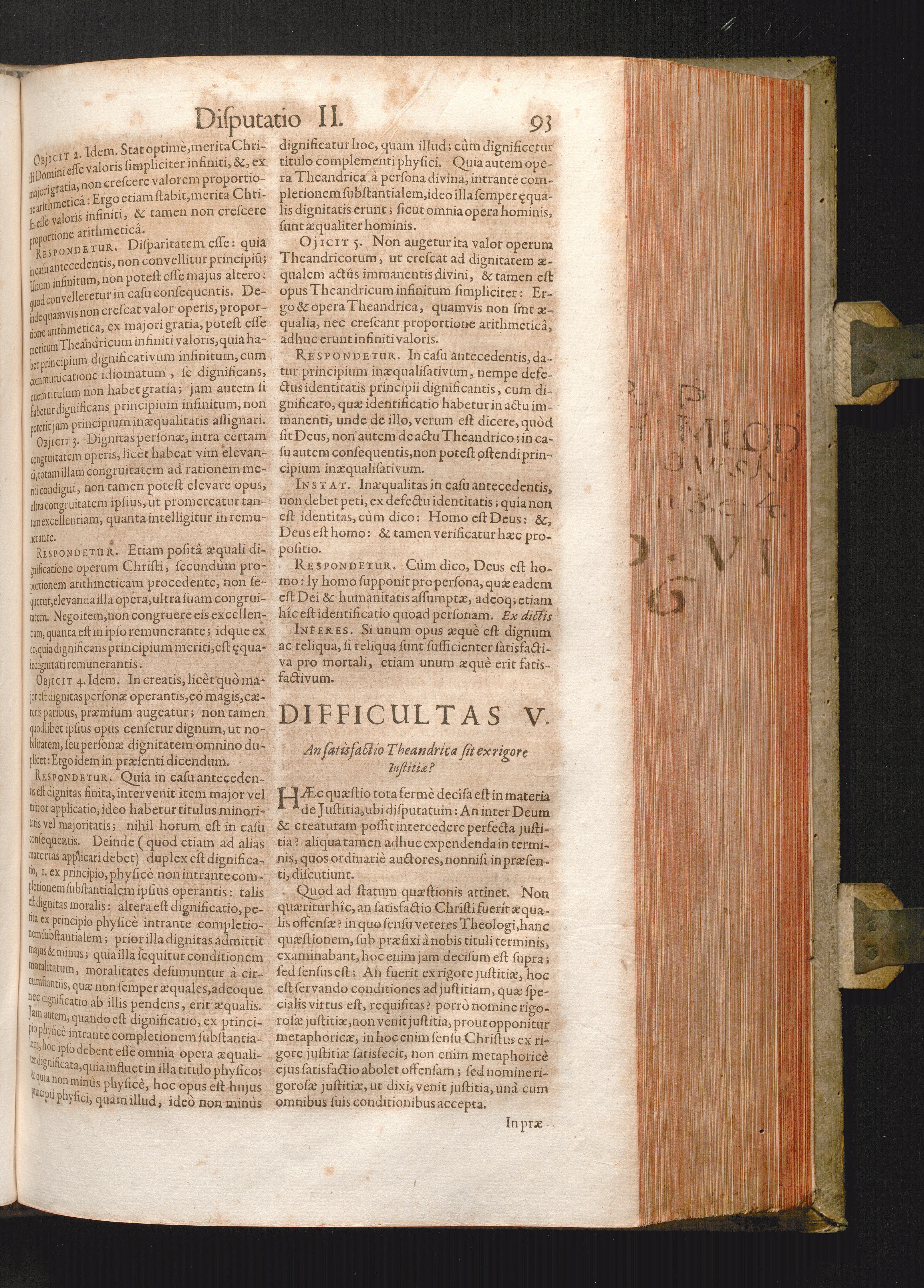 Difficultas V. An satisfactio Theandrica sit ex rigore justitiæ?