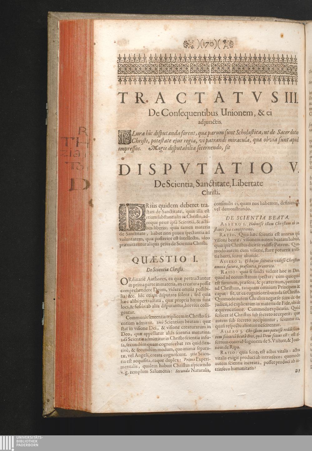 Disputatio V. De Scientia, Sanctitate, Libertate Christi.