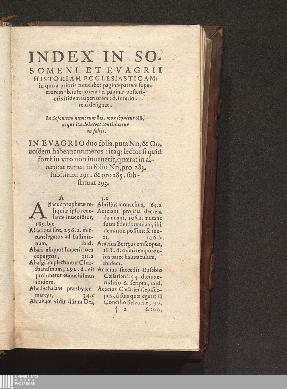 Index in Sosomeni Et Evagrii Historiam Ecclesiasticam: in quo a prioris ...