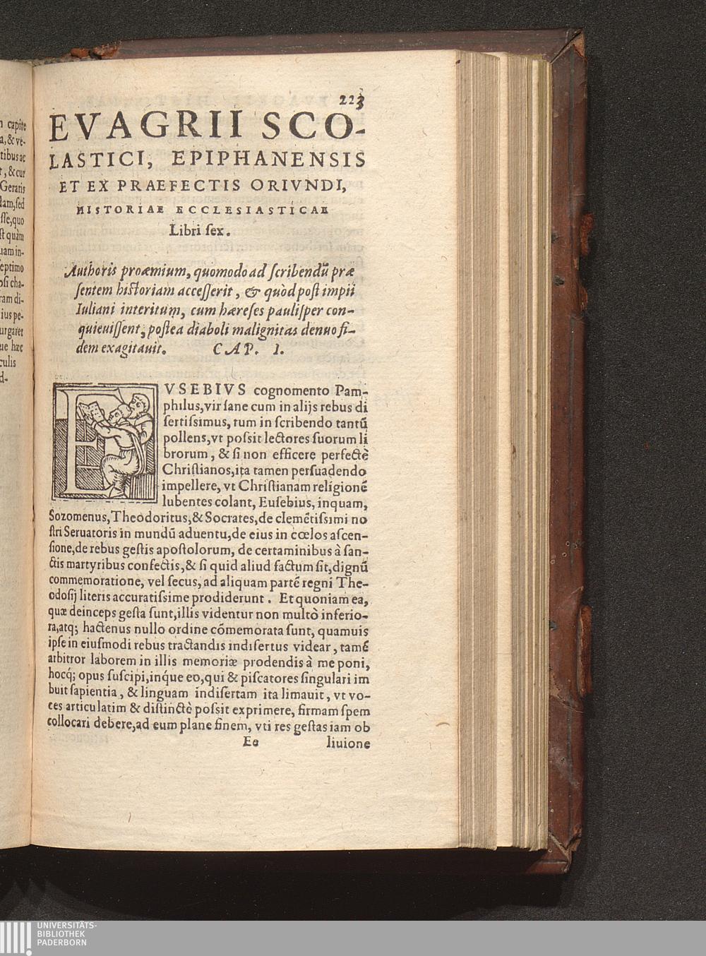 Tertia (1569) HISTORIAE EC||CLESIASTICAE PARS || TERTIA, QVA CON-||TINENTVR || Hermiæ Sozomeni Salaminij lib. 9. || Euagrij Scholastici Epiphanensis lib. 6.|| Ioanne Christophorsono interprete.||