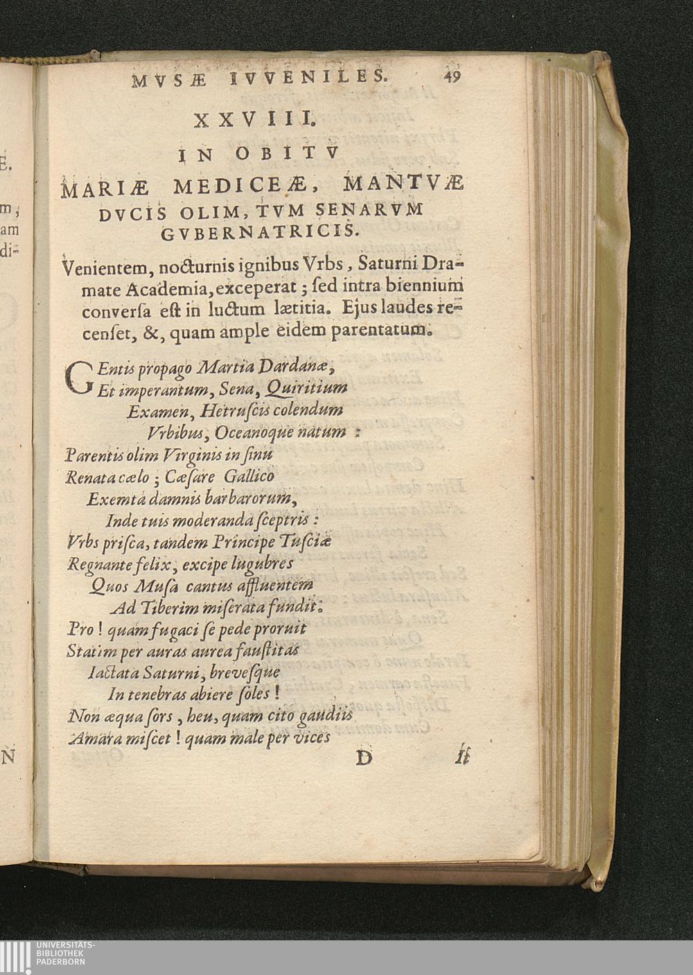 XXVIII. In Obitv Mariae Mediceae, Mantvae Dvcis Olim, Tvm Senarvm Gvbernatricis.