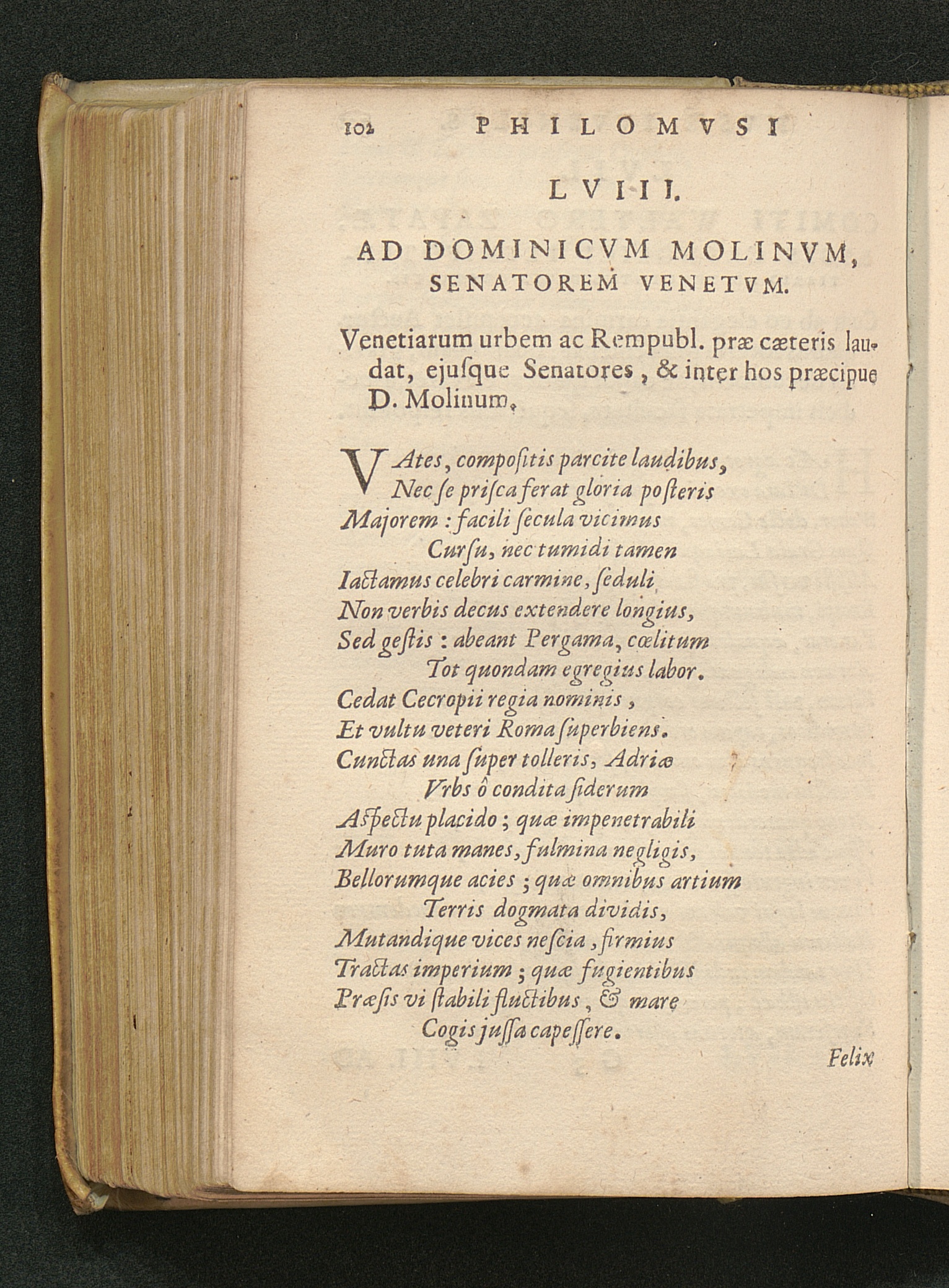 LVIII. Ad Dominicvm Molinvm, Senatorem Venetvm.