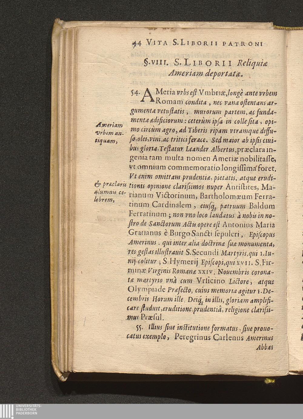 De Sancto Liborio Episcopo Cenomanensi In Gallia, Tvtelari Vrbis Paderbornae In Westphalia,[...]