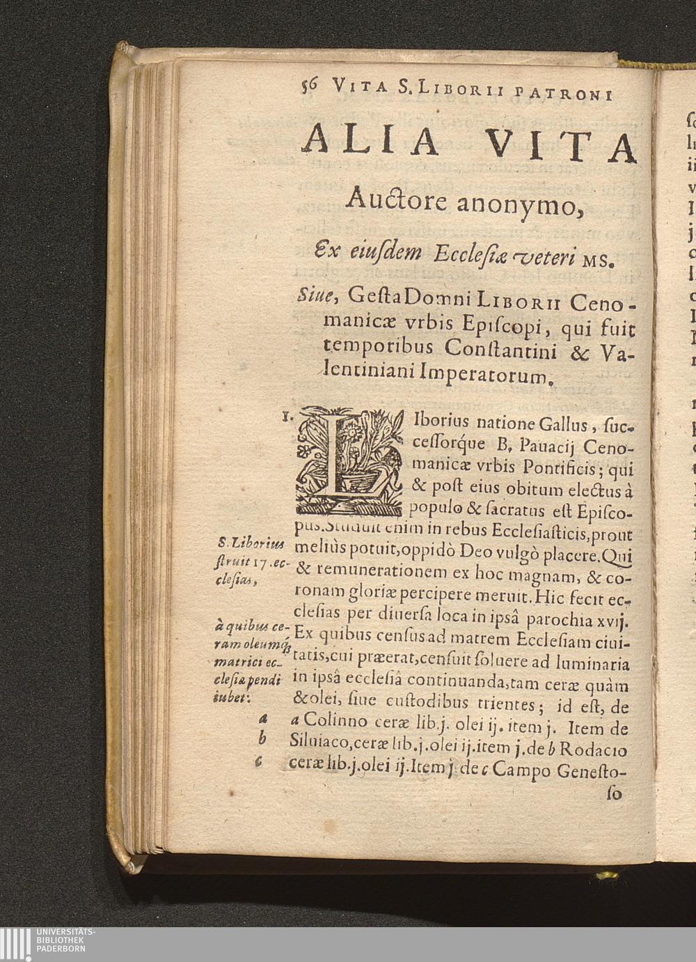 Vita S. Liborii Episcopi, Calcvlo Laborantivm Patroni / E veteribus Mss. eruta, & commentario historico illustrata A Ioanne Bollando E Societate Iesv