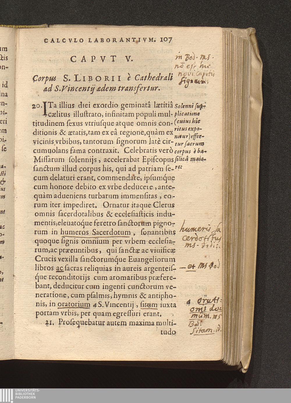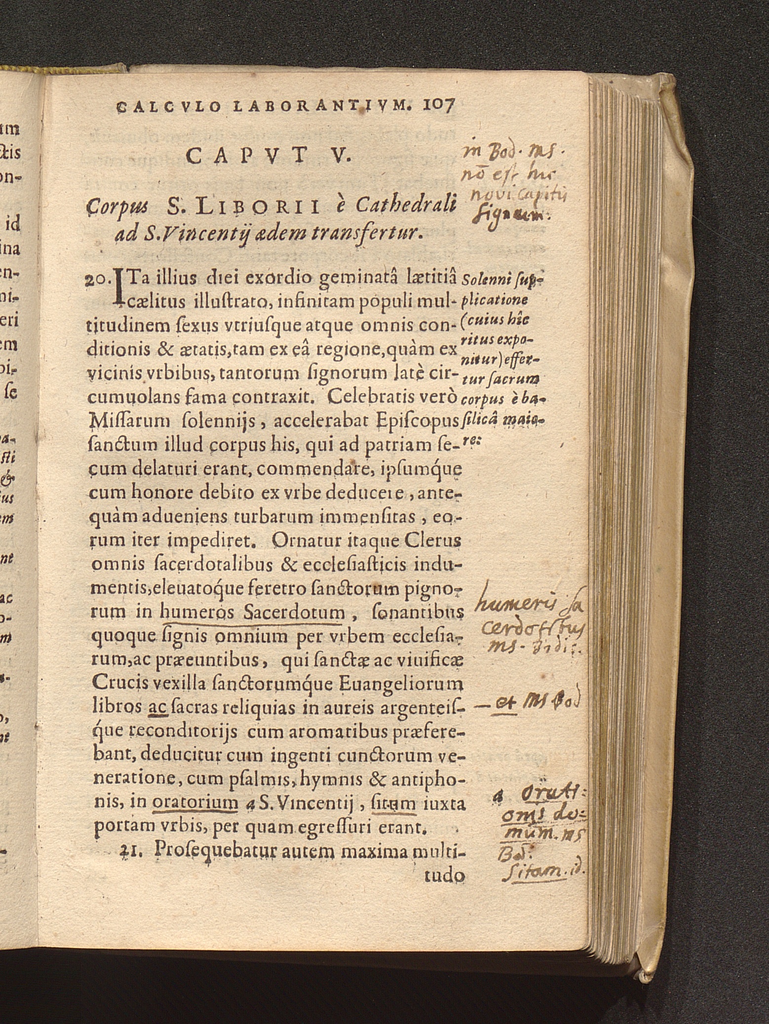 Capvt V. Corpus S. Liborii è Cathedrali ad S. Vincentij aedem transfertur.