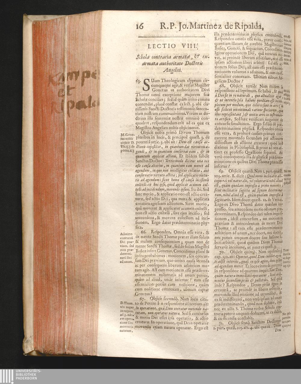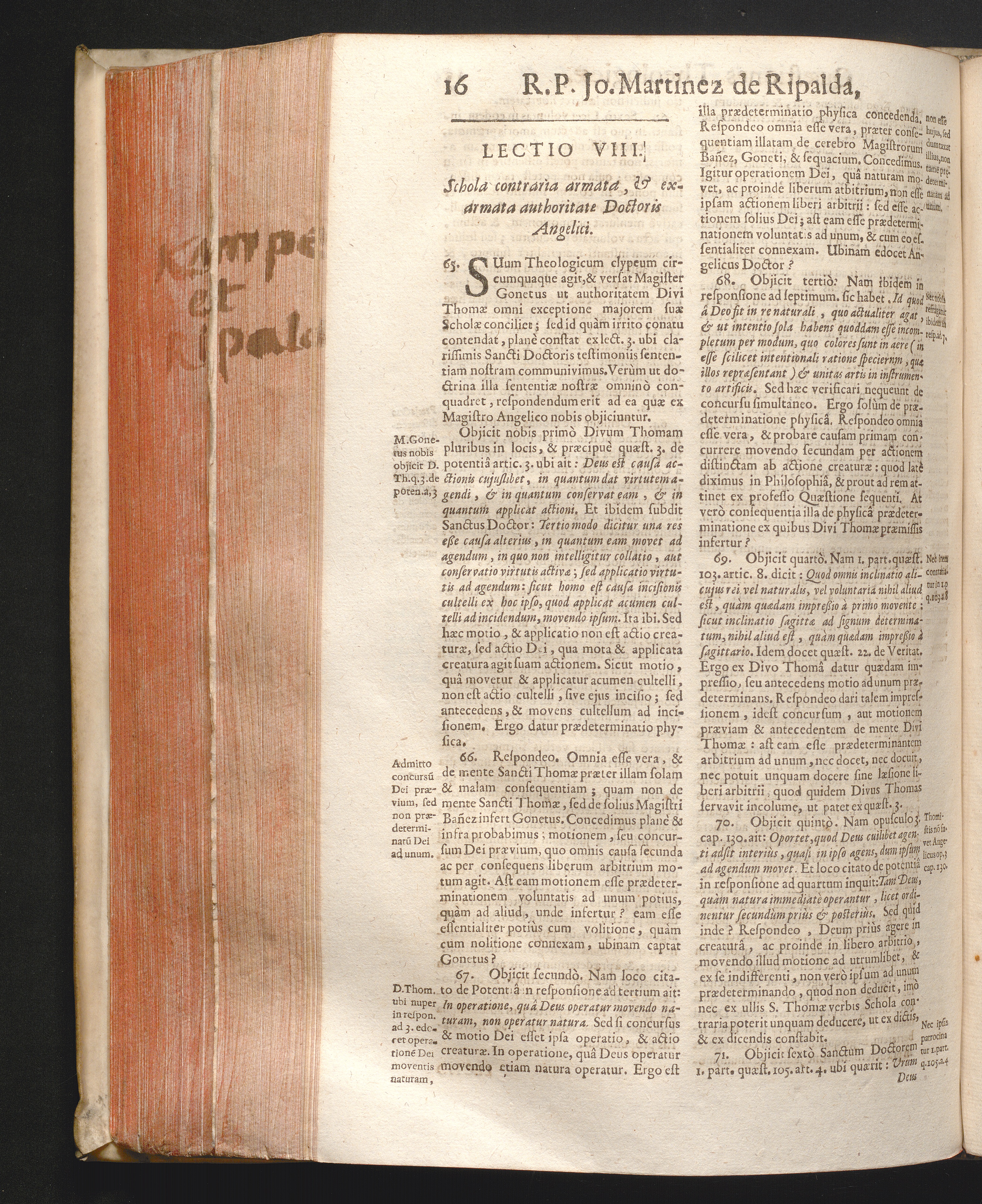 Lectio VIII. Schola contraria armata, & exarmata authoritate Doctoris Angelici.