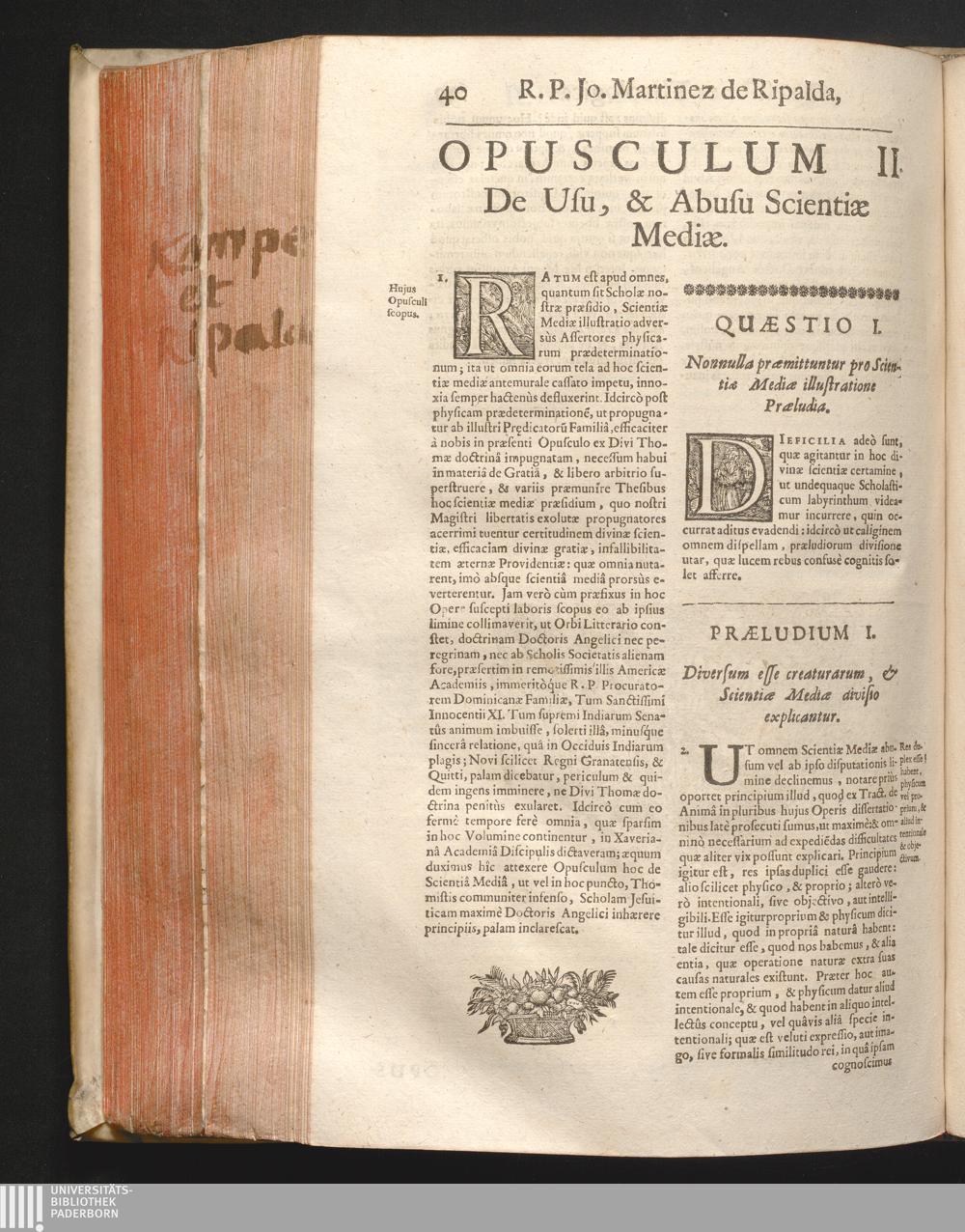 Opusculum II. De Usu, & Abusu Scientiæ Mediæ.