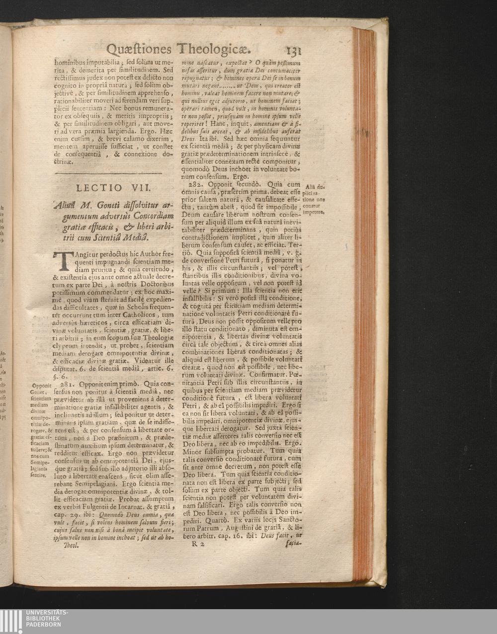 Lectio VII. Aliud M. Goneti dissolvitur argumentum adversùs Concordiam gratiæ efficacis,[...]