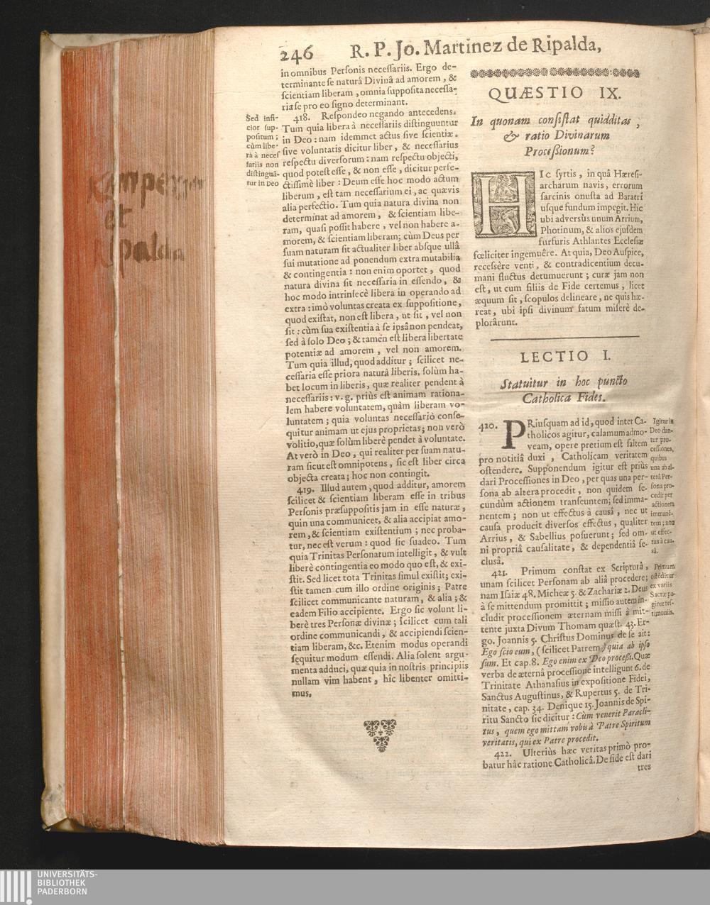 Lectio I. Statuitur in hoc puncto Catholica Fides.
