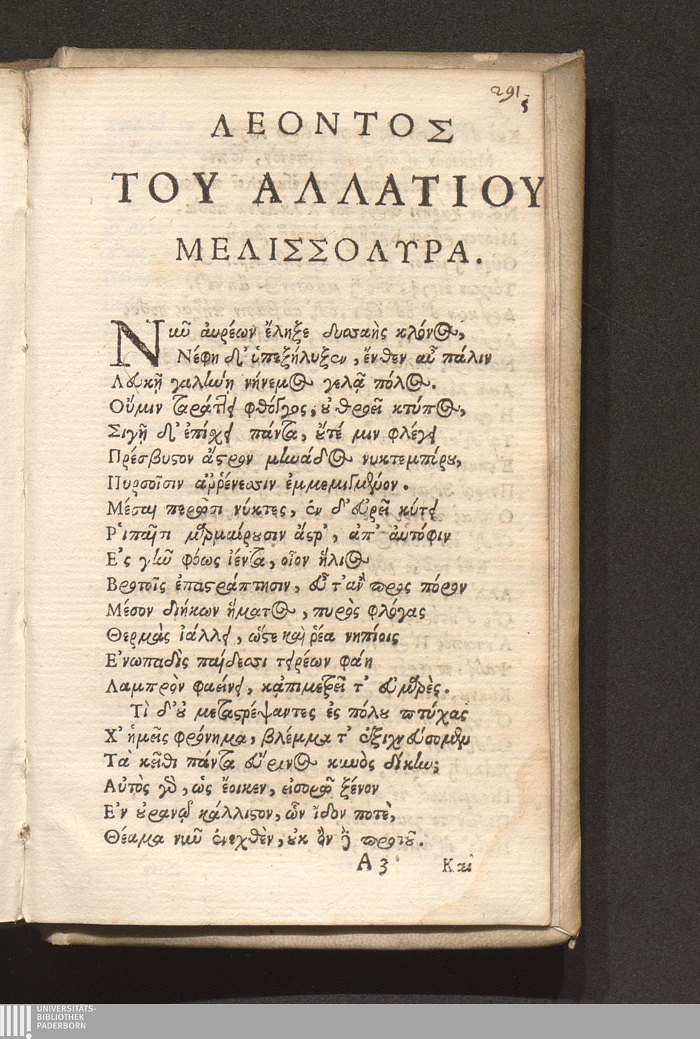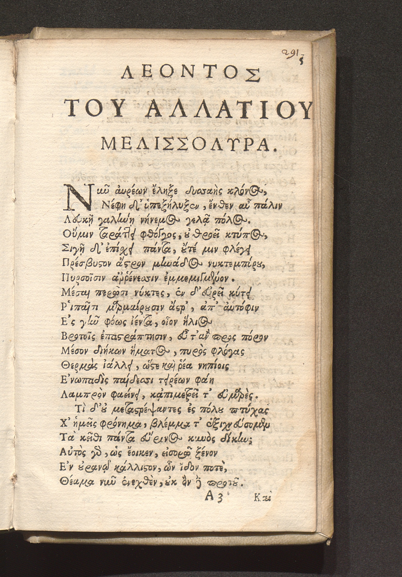Leonis Allatii Melissolyra De Laudibus Dionysii Petavii Societatis Iesu Presbyteri