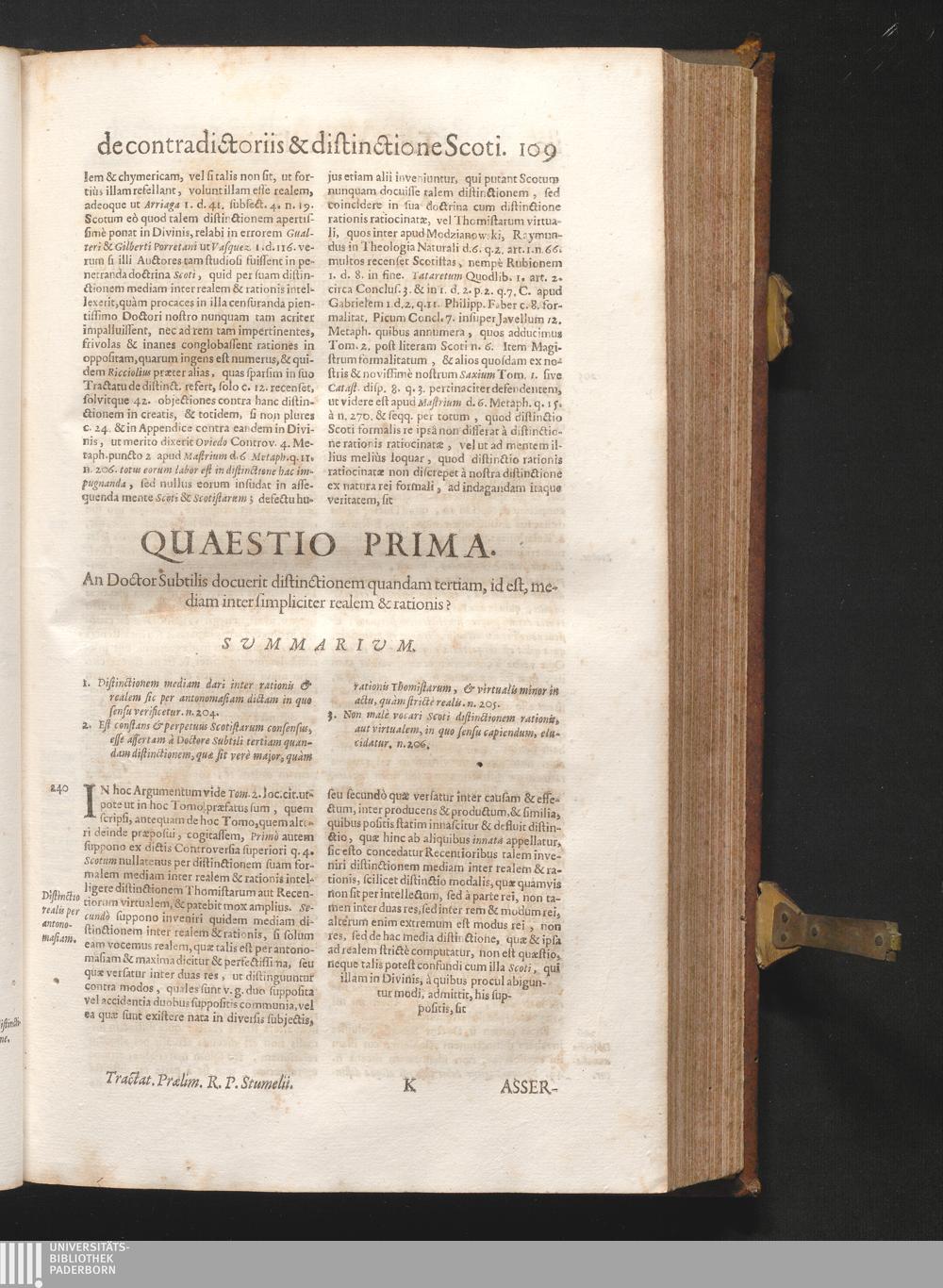 1-2 (1680) Controversiarum Inter Principes Cathedras Divi Thomæ Doctoris Angelici, Et Scoti Doctoris Svbtilis : Nec Non Aliarvm Illvstrissimarvm Scholarvm De Simplicitate Dei, Et Distinctione In Ipsa Deitatis Ac Identitatis Divinæ Abysso Latenter Recondita, Eaque Ad Divinam Simplicitatem Comparata Primum & Perenne Mobile ... In Dvos Divisvm Tomos / Auctore R. A. P. Friderico Stvmelio SS. Theol. Lectore Iubilato, Ord. FF. Min. Recollect. Provinciæ Thuringiæ S. Elisabethæ Patre