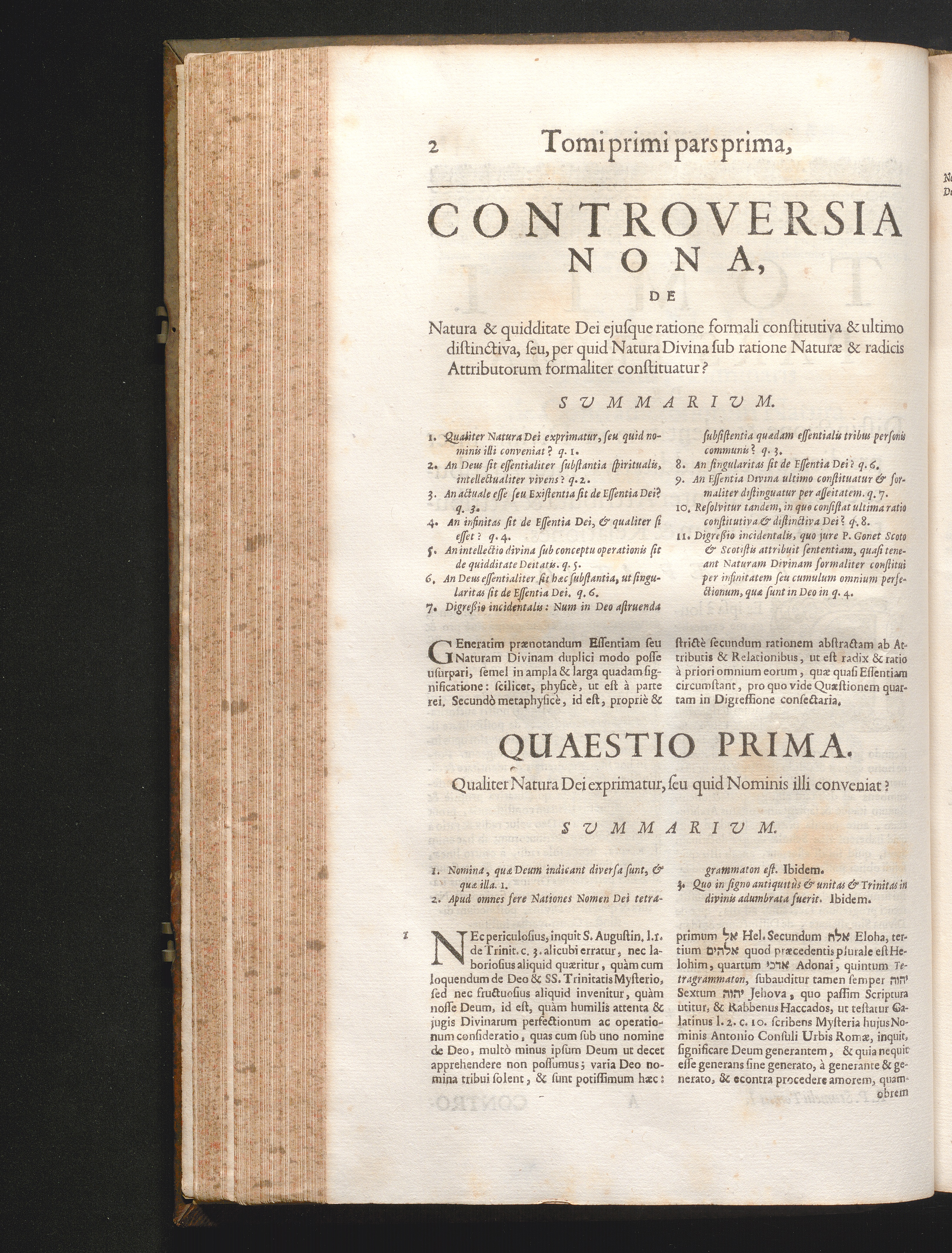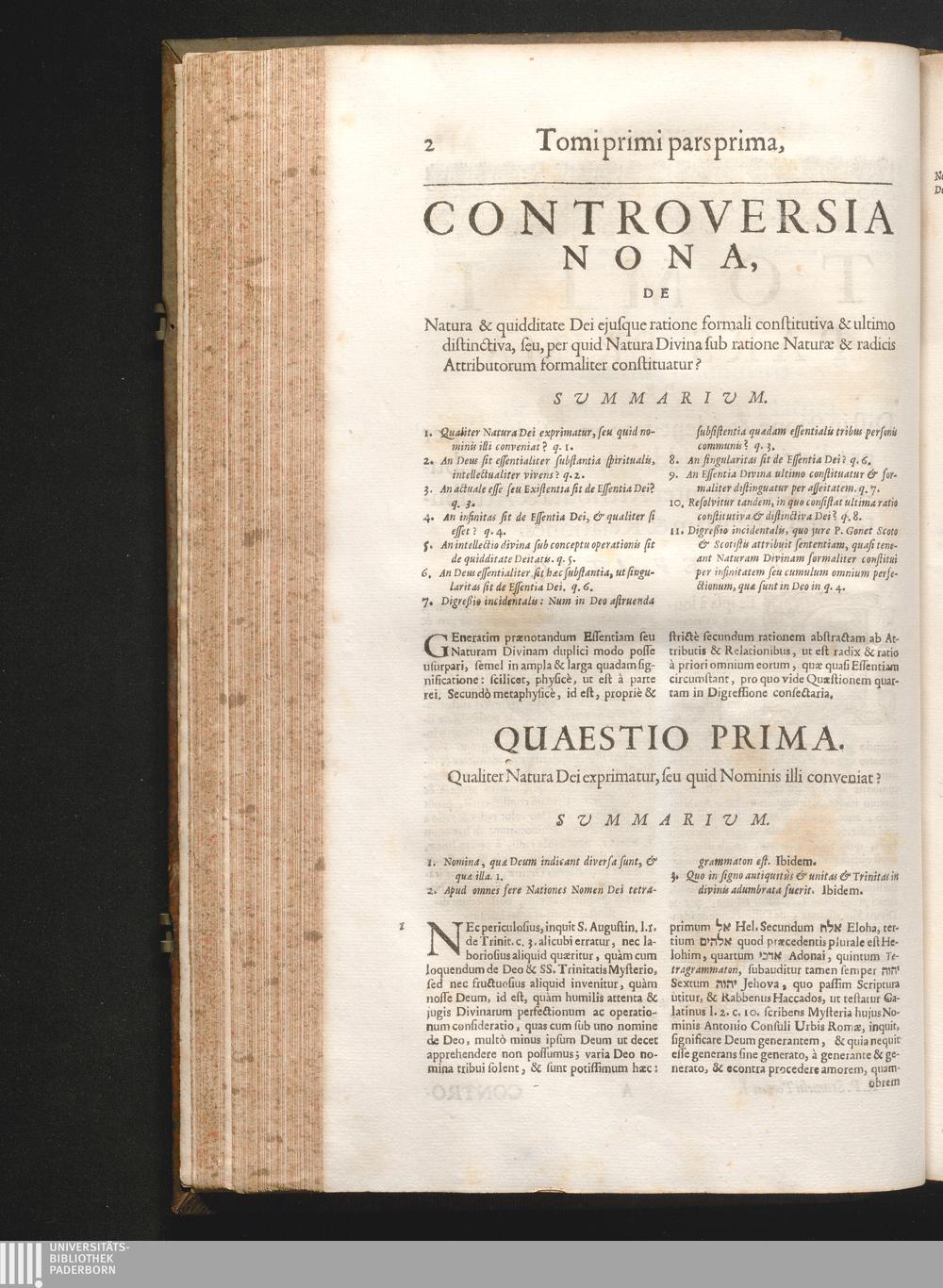 1-2 (1680) Controversiarum Inter Principes Cathedras Divi Thomæ Doctoris Angelici, Et Scoti Doctoris Svbtilis : Nec Non Aliarvm Illvstrissimarvm Scholarvm De Simplicitate Dei, Et Distinctione In Ipsa Deitatis Ac Identitatis Divinæ Abysso Latenter Recondita, Eaque Ad Divinam Simplicitatem Comparata Primum & Perenne Mobile ... In Dvos Divisvm Tomos / Auctore R. A. P. Friderico Stvmelio SS. Theol. Lectore Iubilato, Ord. FF. Min. Recollect. Provinciæ Thuringiæ S. Elisabethæ Patre