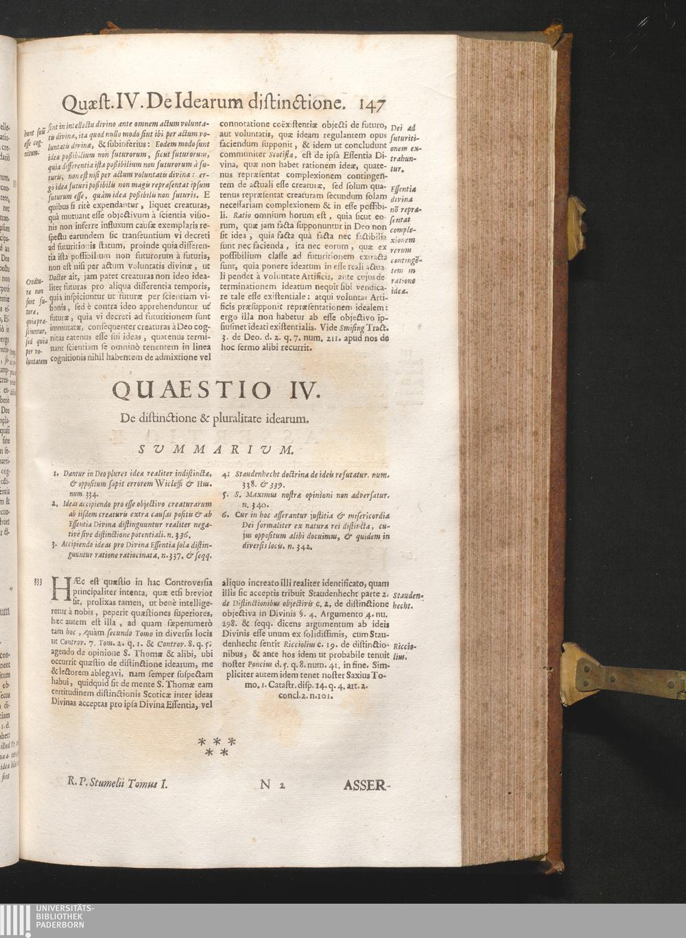 1-2 (1680) Controversiarum Inter Principes Cathedras Divi Thomæ Doctoris Angelici, Et Scoti Doctoris Svbtilis : Nec Non Aliarvm Illvstrissimarvm Scholarvm De Simplicitate Dei, Et Distinctione In Ipsa Deitatis Ac Identitatis Divinæ Abysso Latenter Recondita, Eaque Ad Divinam Simplicitatem Comparata Primum & Perenne Mobile ... In Dvos Divisvm Tomos / Auctore R. A. P. Friderico Stvmelio SS. Theol. Lectore Iubilato, Ord. FF. Min. Recollect. Provinciæ Thuringiæ S. Elisabethæ Patre