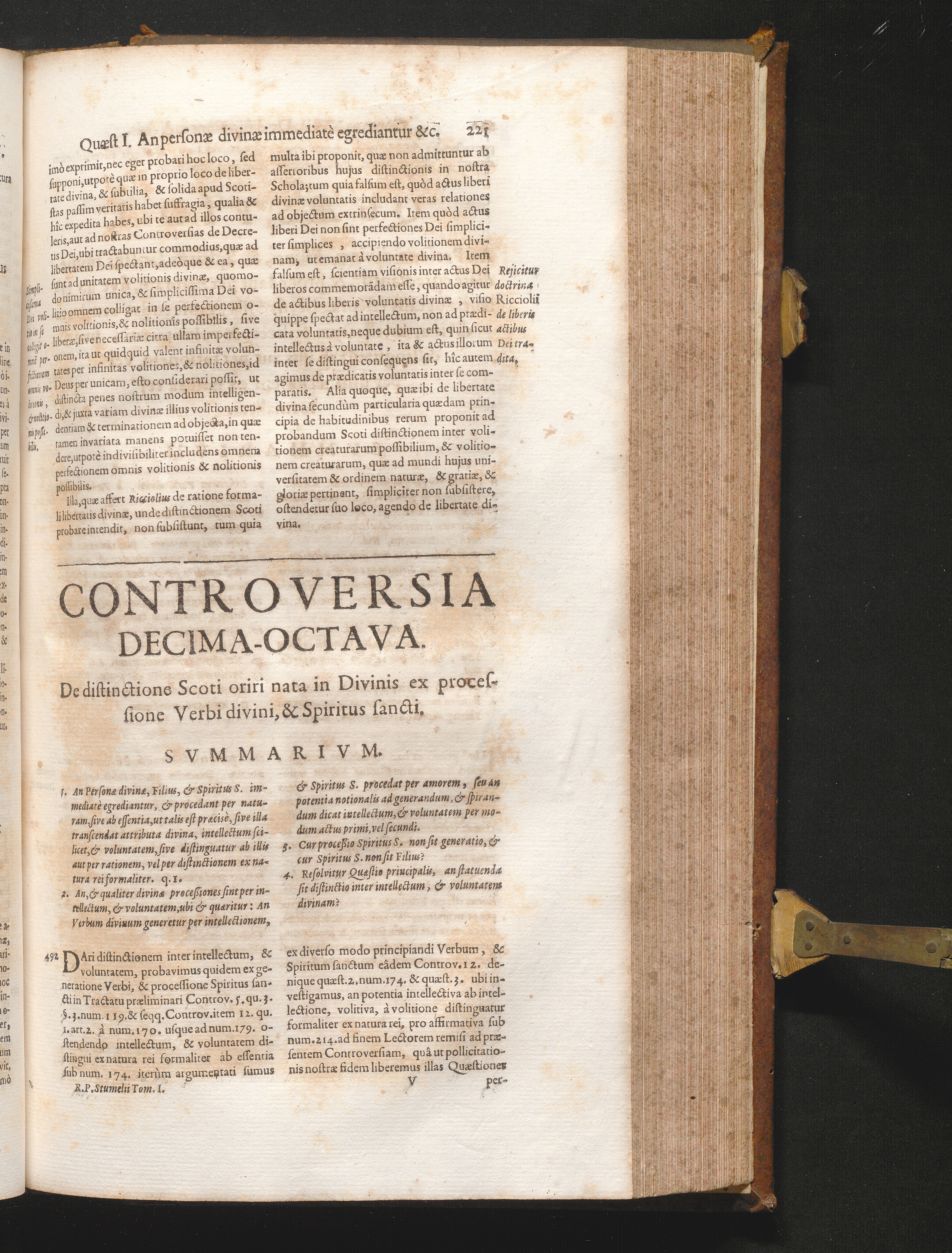 1-2 (1680) Controversiarum Inter Principes Cathedras Divi Thomæ Doctoris Angelici, Et Scoti Doctoris Svbtilis : Nec Non Aliarvm Illvstrissimarvm Scholarvm De Simplicitate Dei, Et Distinctione In Ipsa Deitatis Ac Identitatis Divinæ Abysso Latenter Recondita, Eaque Ad Divinam Simplicitatem Comparata Primum & Perenne Mobile ... In Dvos Divisvm Tomos / Auctore R. A. P. Friderico Stvmelio SS. Theol. Lectore Iubilato, Ord. FF. Min. Recollect. Provinciæ Thuringiæ S. Elisabethæ Patre